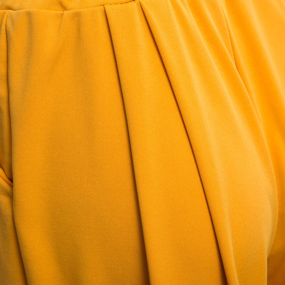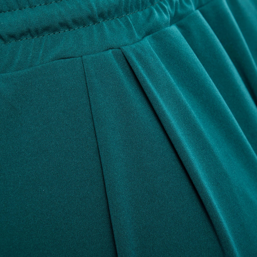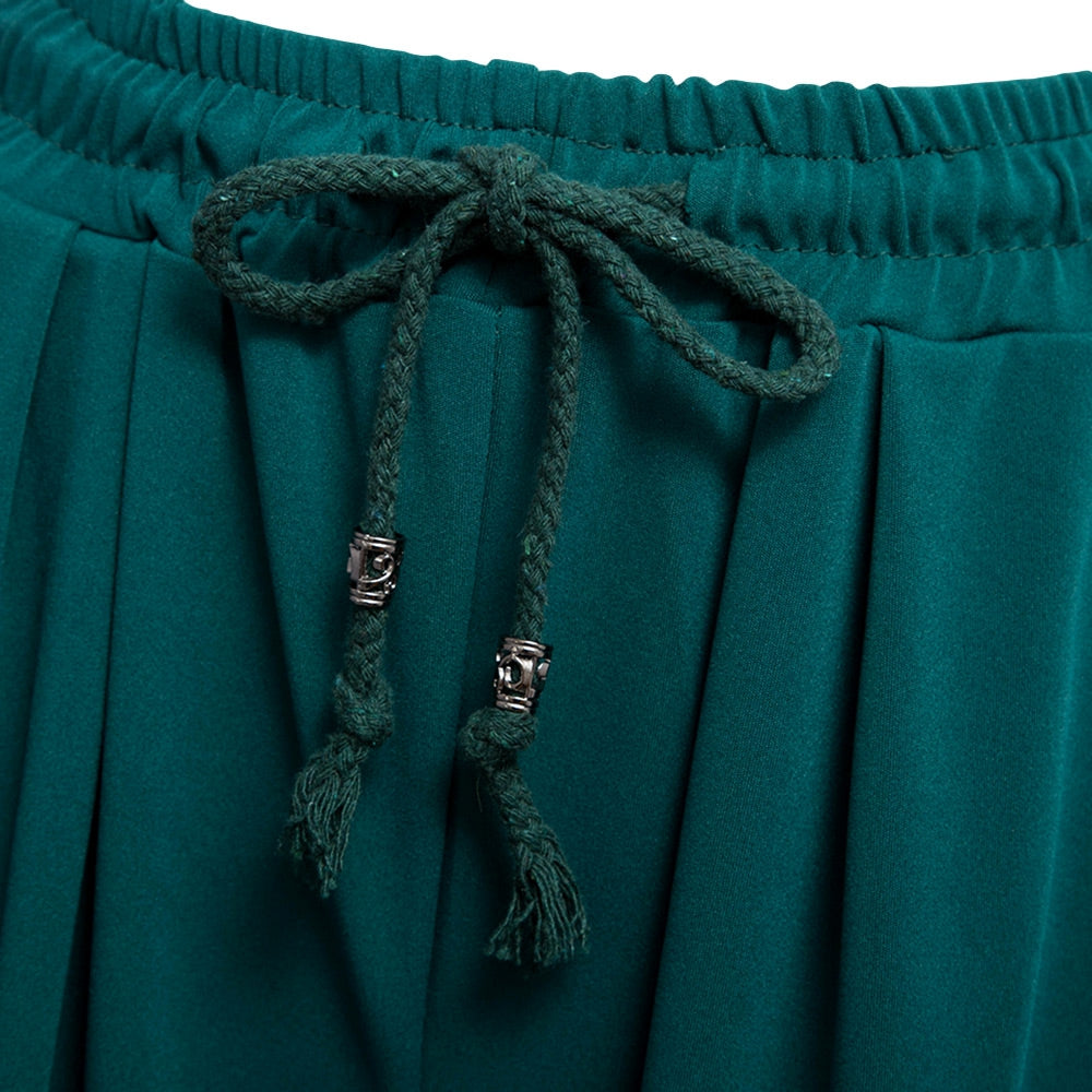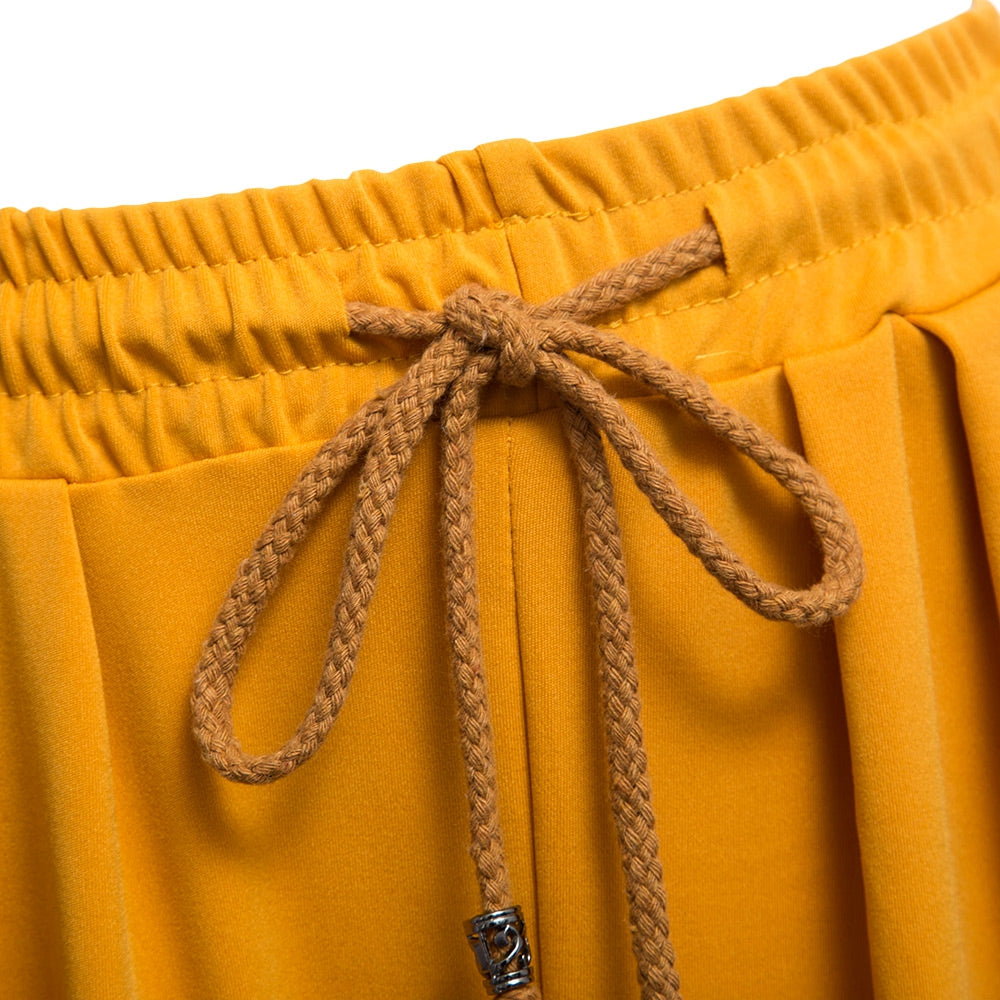 Casual Elastic Waist Drawstring with Pocket Wide-leg Solid Color Ninth Pants for Women