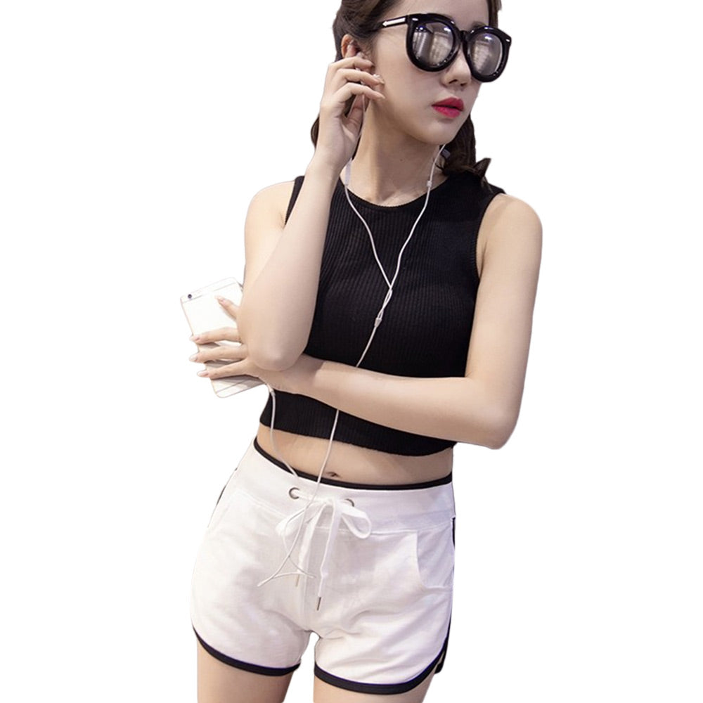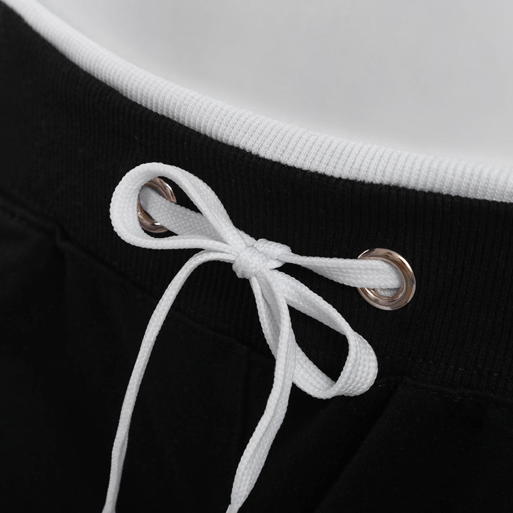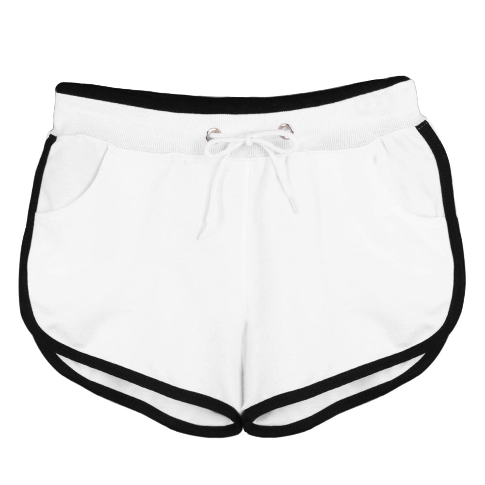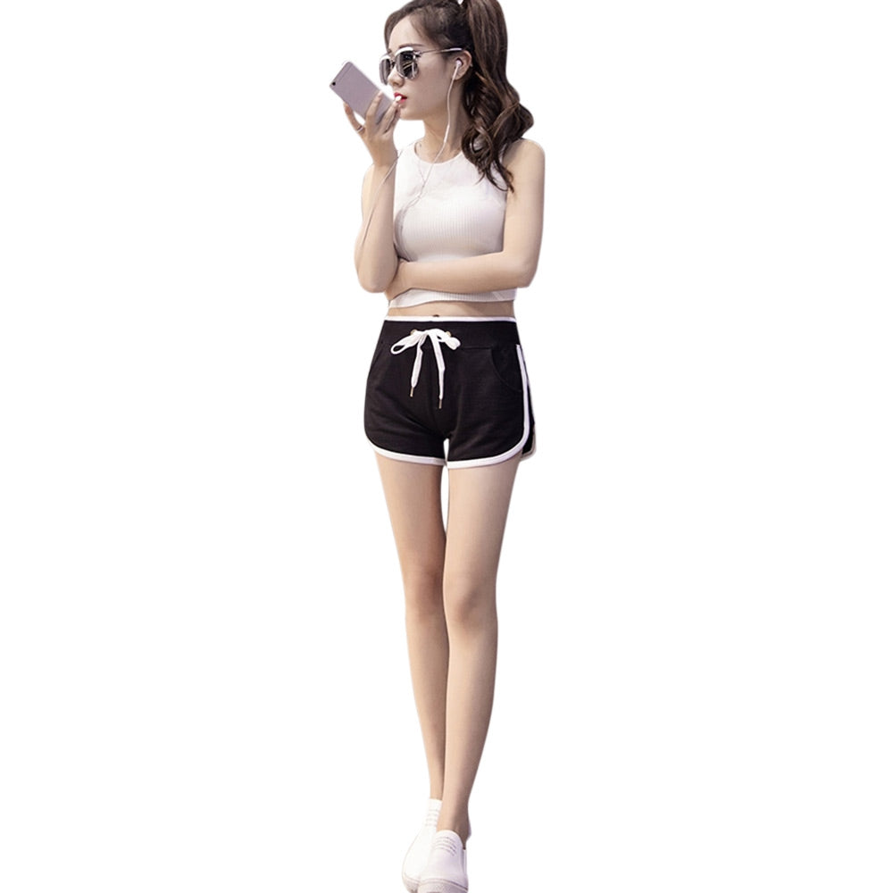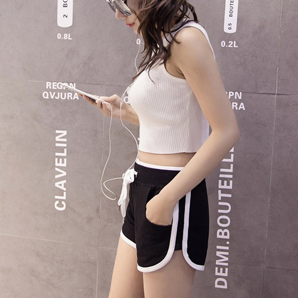Active High Elasitc Waist Drawstring with Pocket Straight Color Block Cotton Shorts for Women