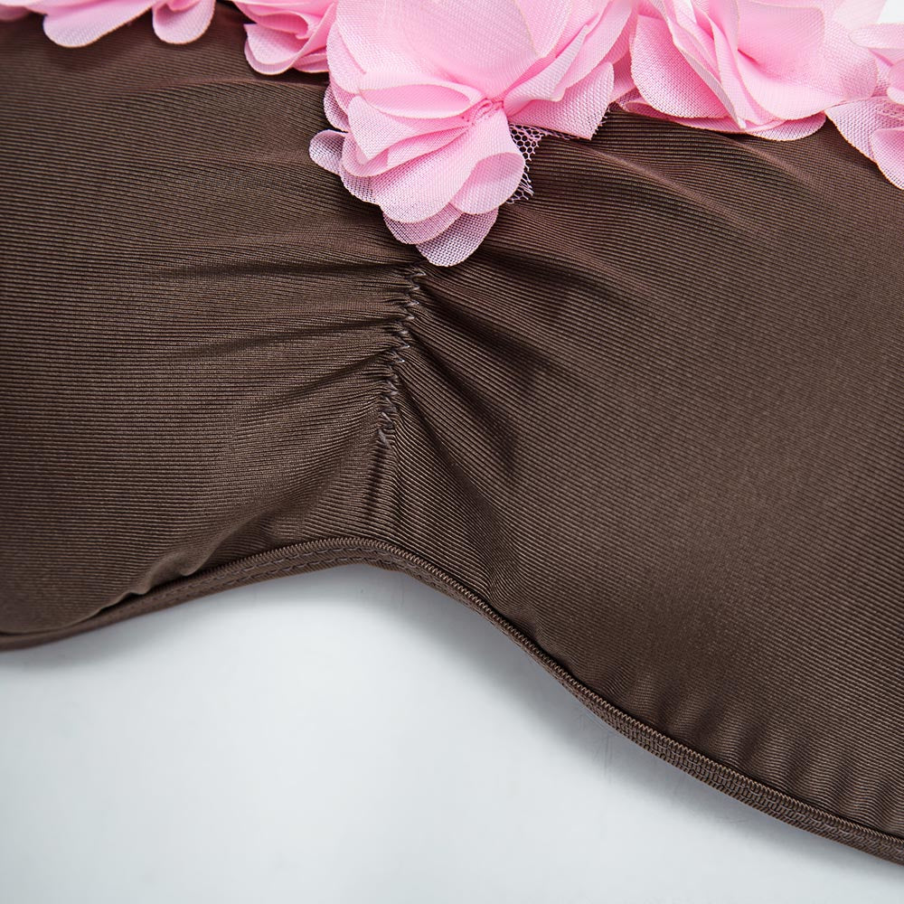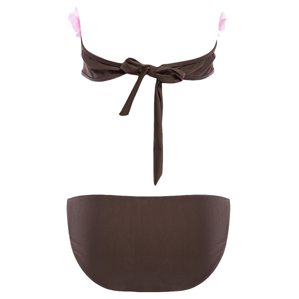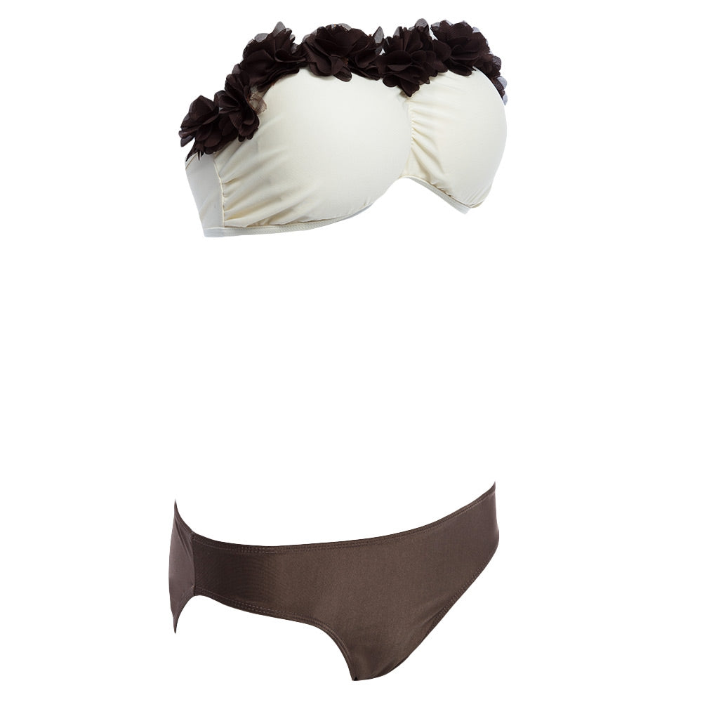 Sweet Strapless Lacework Bra Low Waist Brief Bikini Set for Women