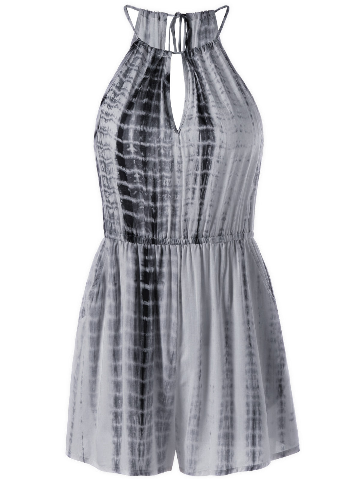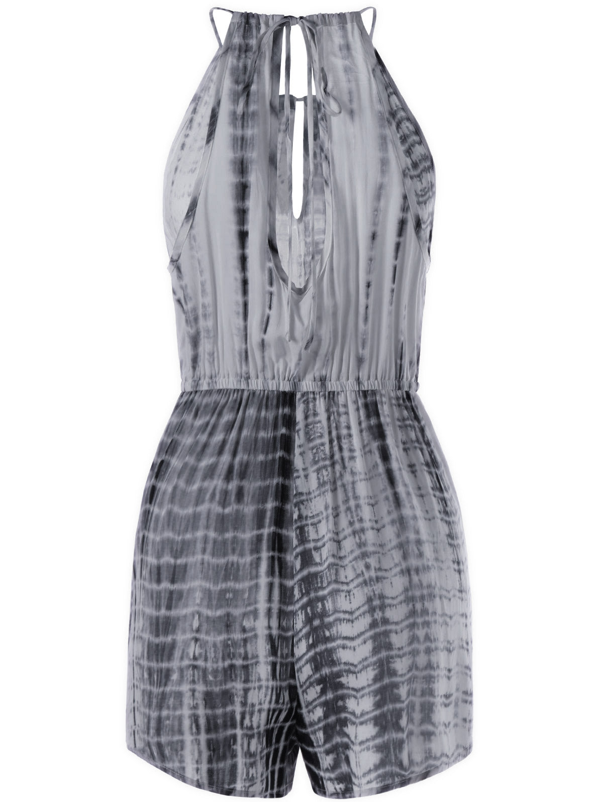 Cut Out Sleeveless Tie-Dye High Neck Romper