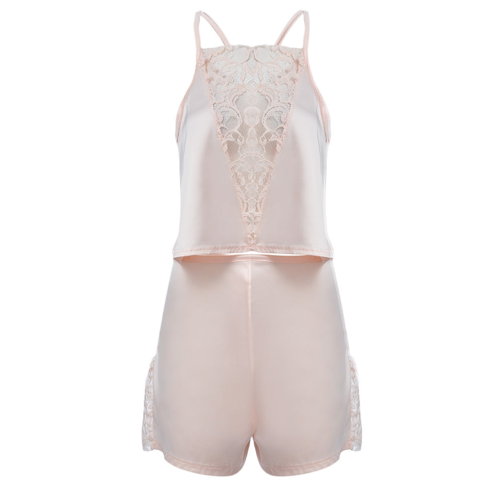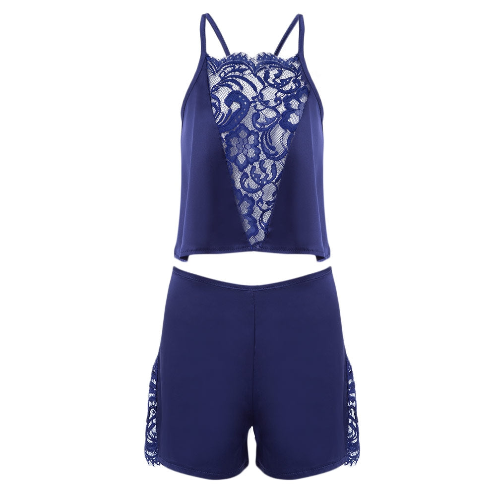 Sexy Spaghetti Strap Lace Spliced Tank Top Zippered Shorts Twinset for Women