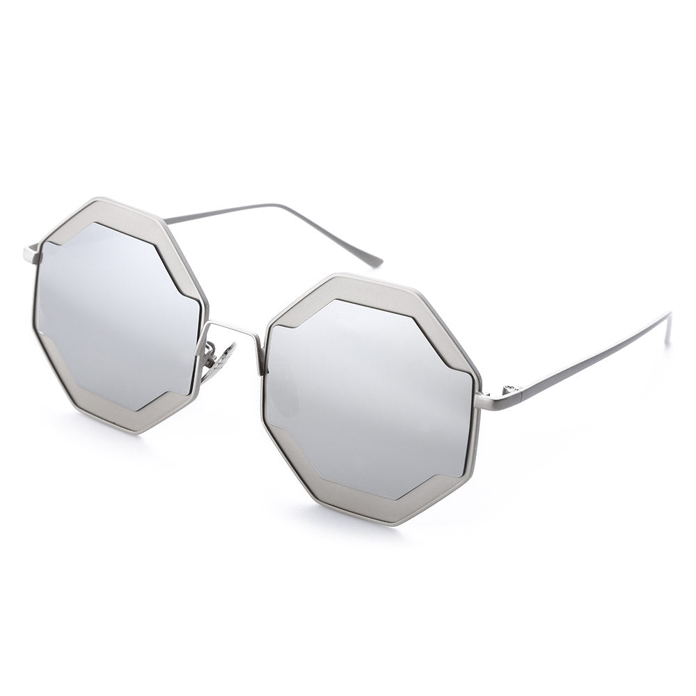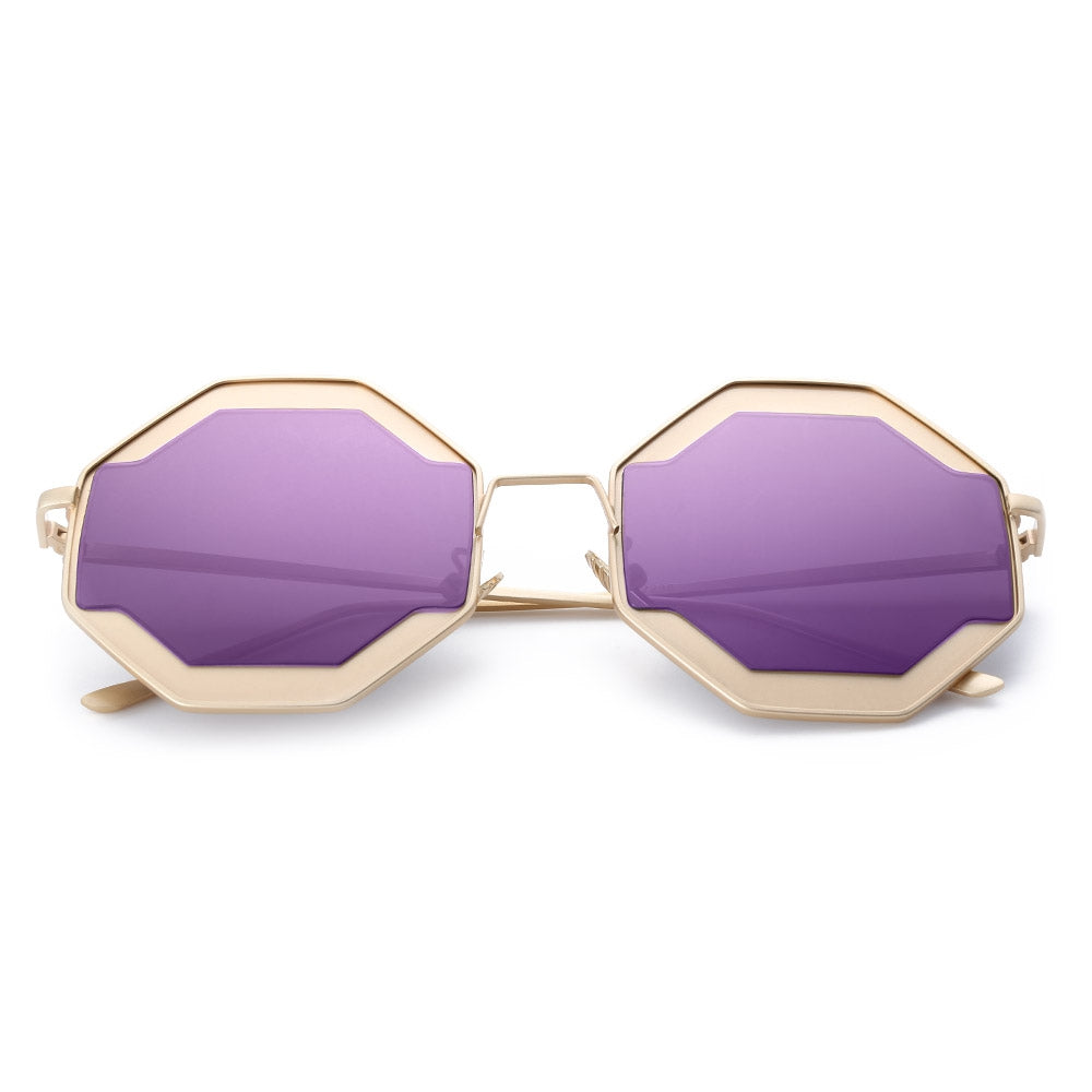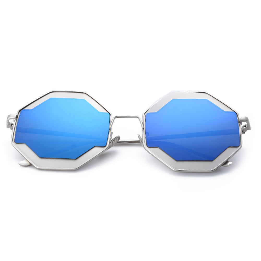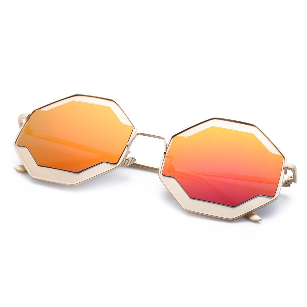 Color Coated Polygon Frame Character Ladies Sunglasses