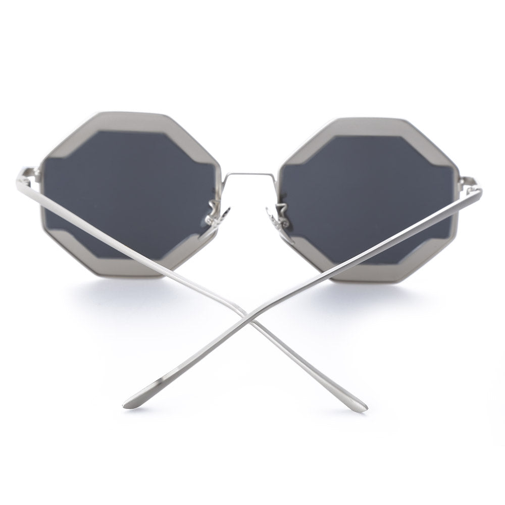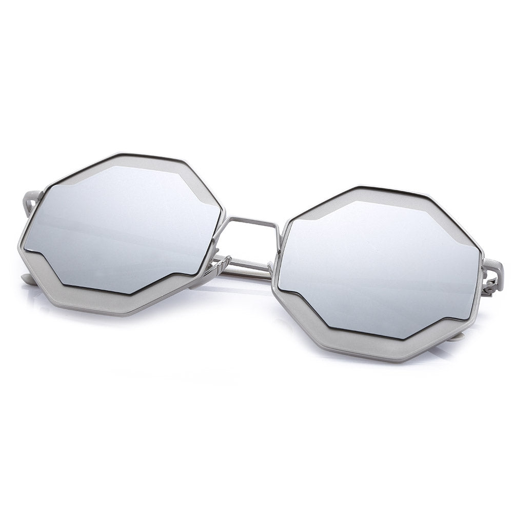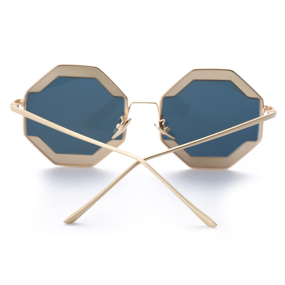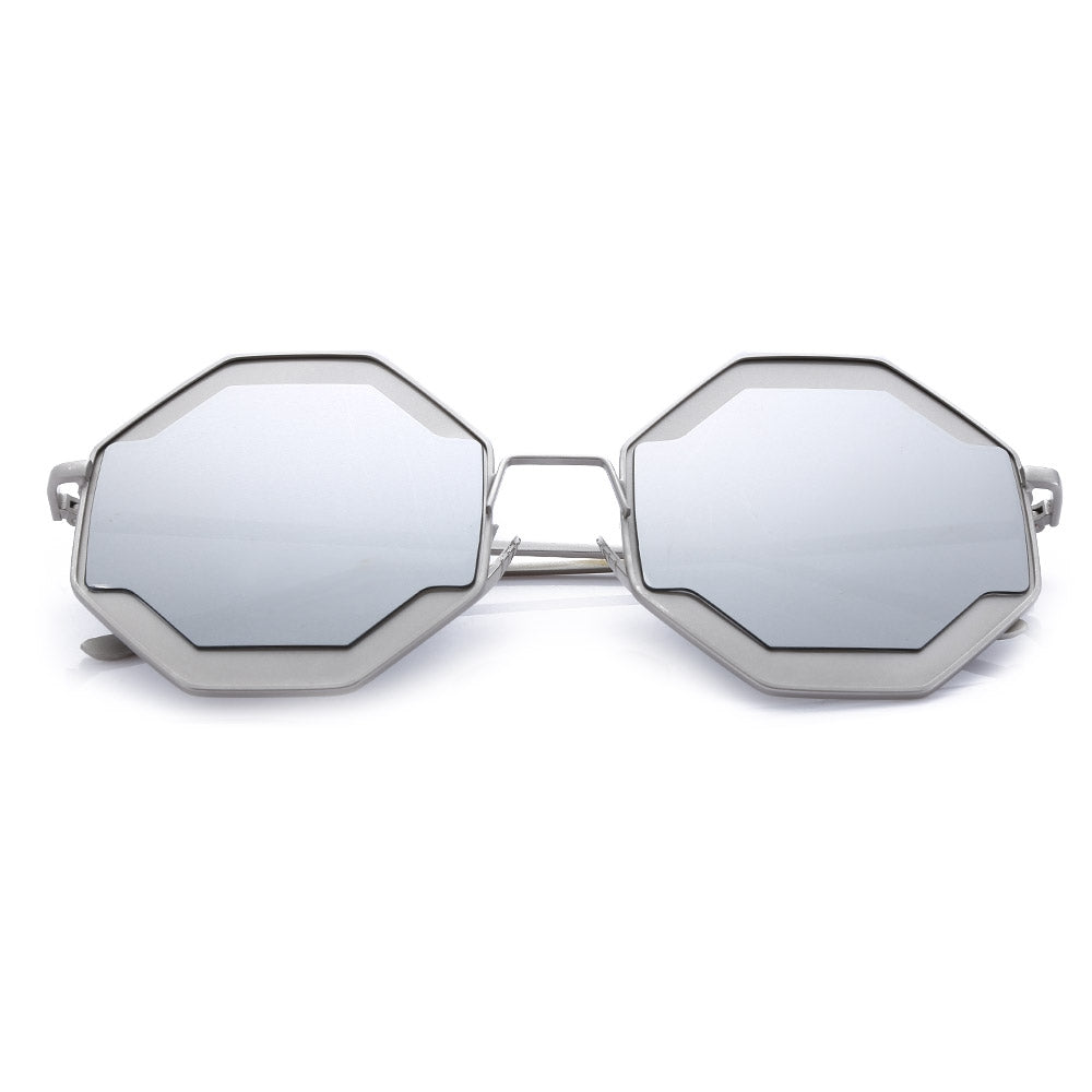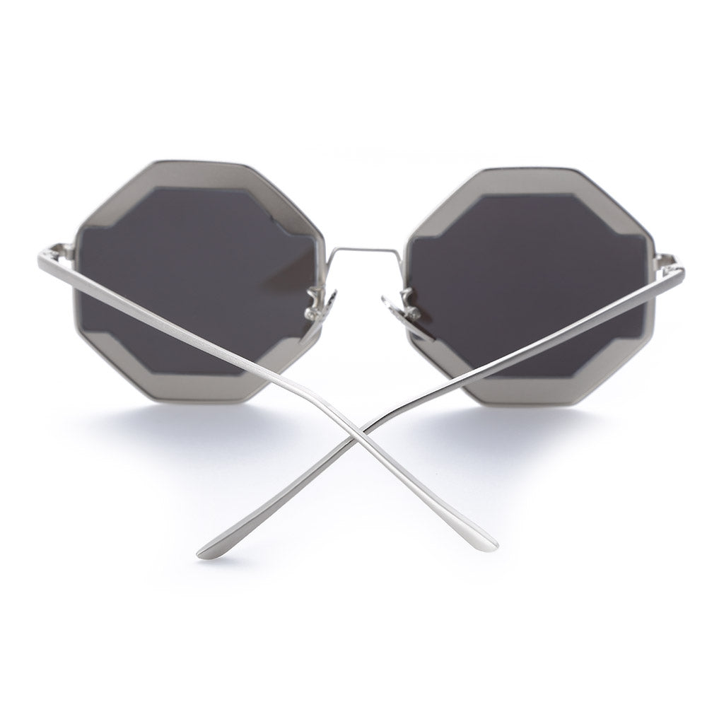 Color Coated Polygon Frame Character Ladies Sunglasses