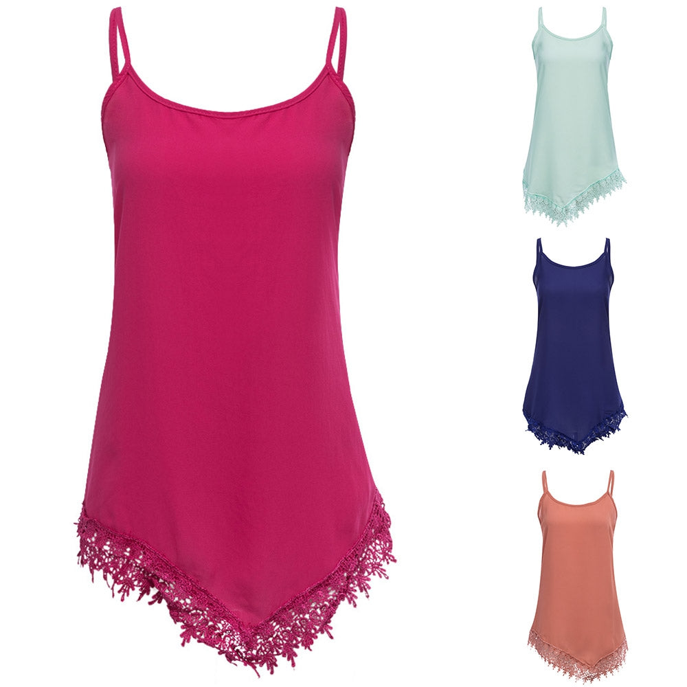 Trendy Spaghetti Strap Irregular Lacework Tank Top for Women
