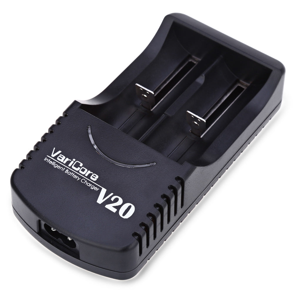 Package Contents: 1 x Varicore V20 1A 2 Slots 18650 Battery Charger, 1 x Plug