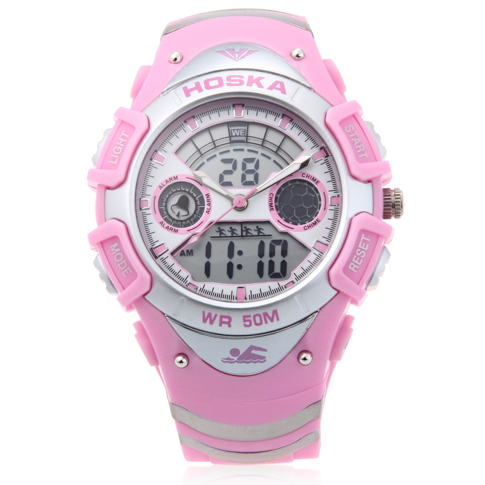 - HOSKA HD014B dual movt kids sport watch, quality quartz movement and LED digital movement, ensure high precision.