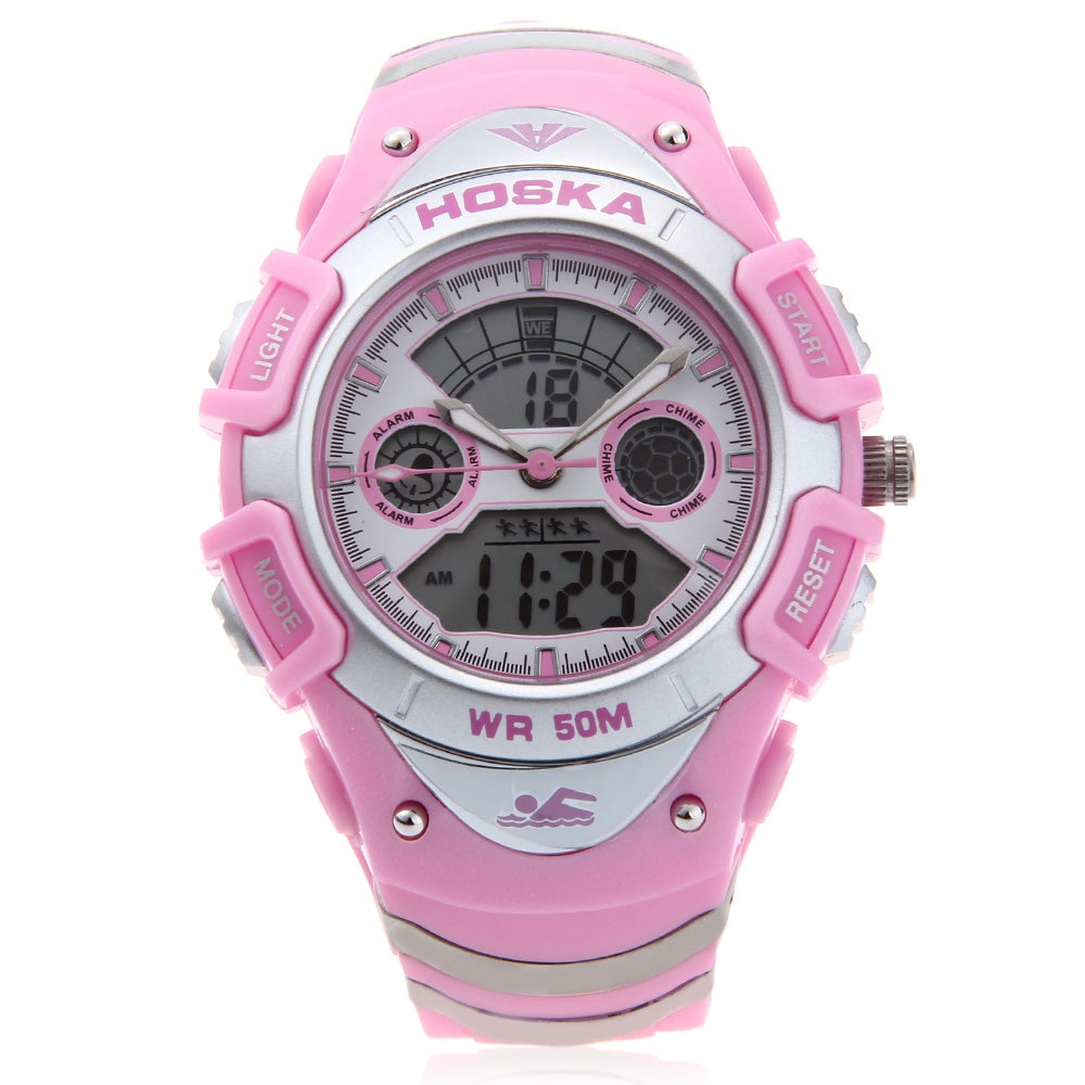 HOSKA HD014S Dual Movt Children Sport Quartz Digital Watch Luminous Day Chronograph Display 5ATM Wristwatch