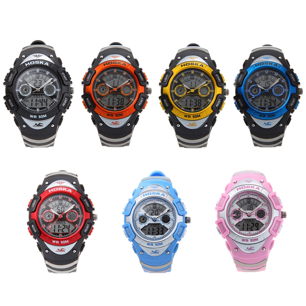 - HOSKA HD014S dual movt kids sport watch, quality quartz movement and LED digital movement, ensure high precision.