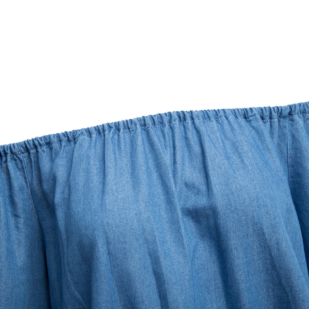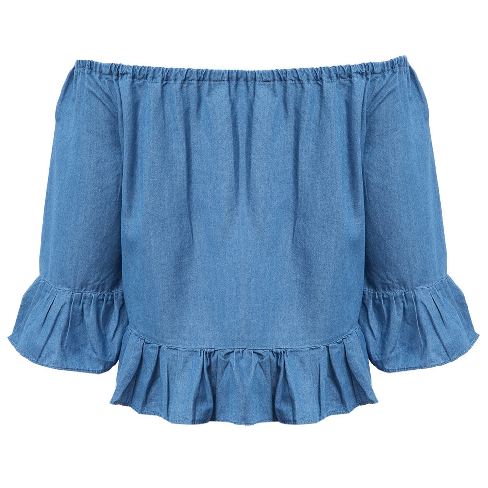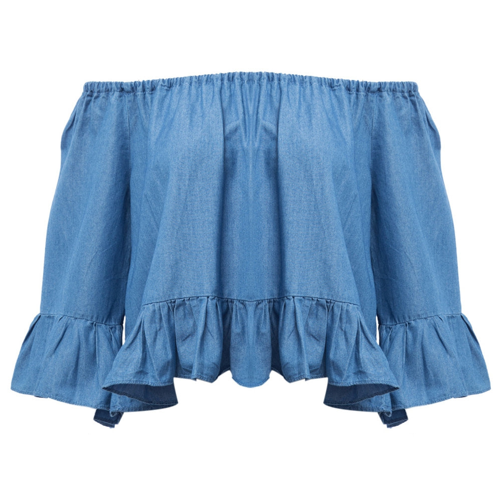 Trendy Off The Shoulder Short Sleeve Flounced Pure Color Blouse for Women