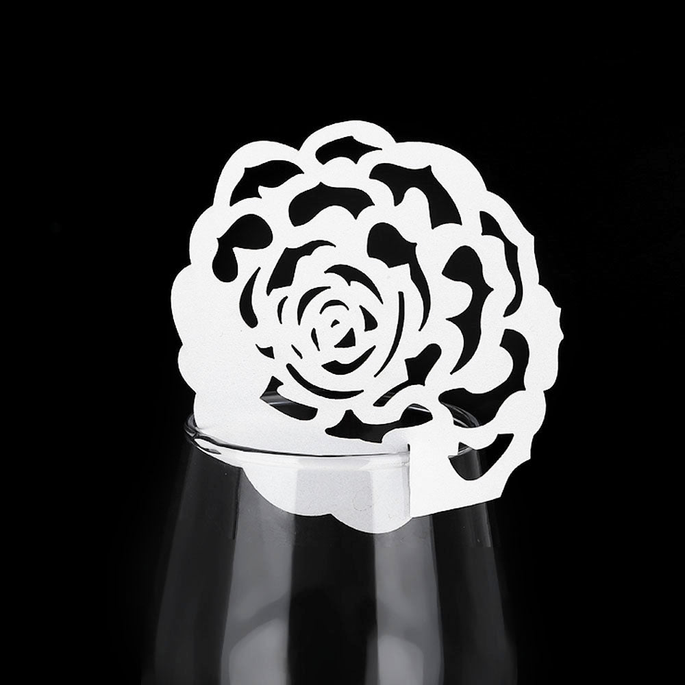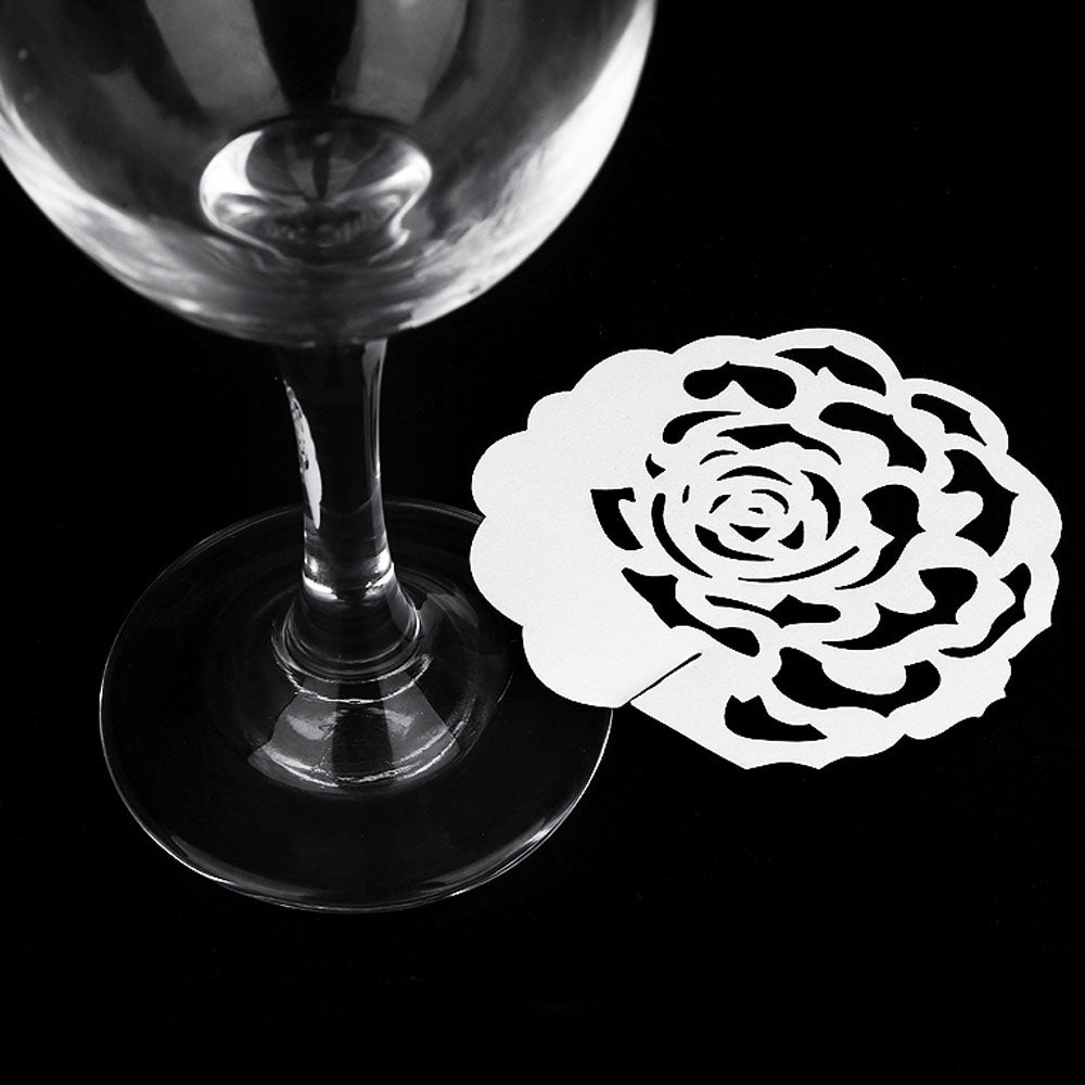 50pcs Hollow Rose Shape Decoration Paper Wine Glass Place Card