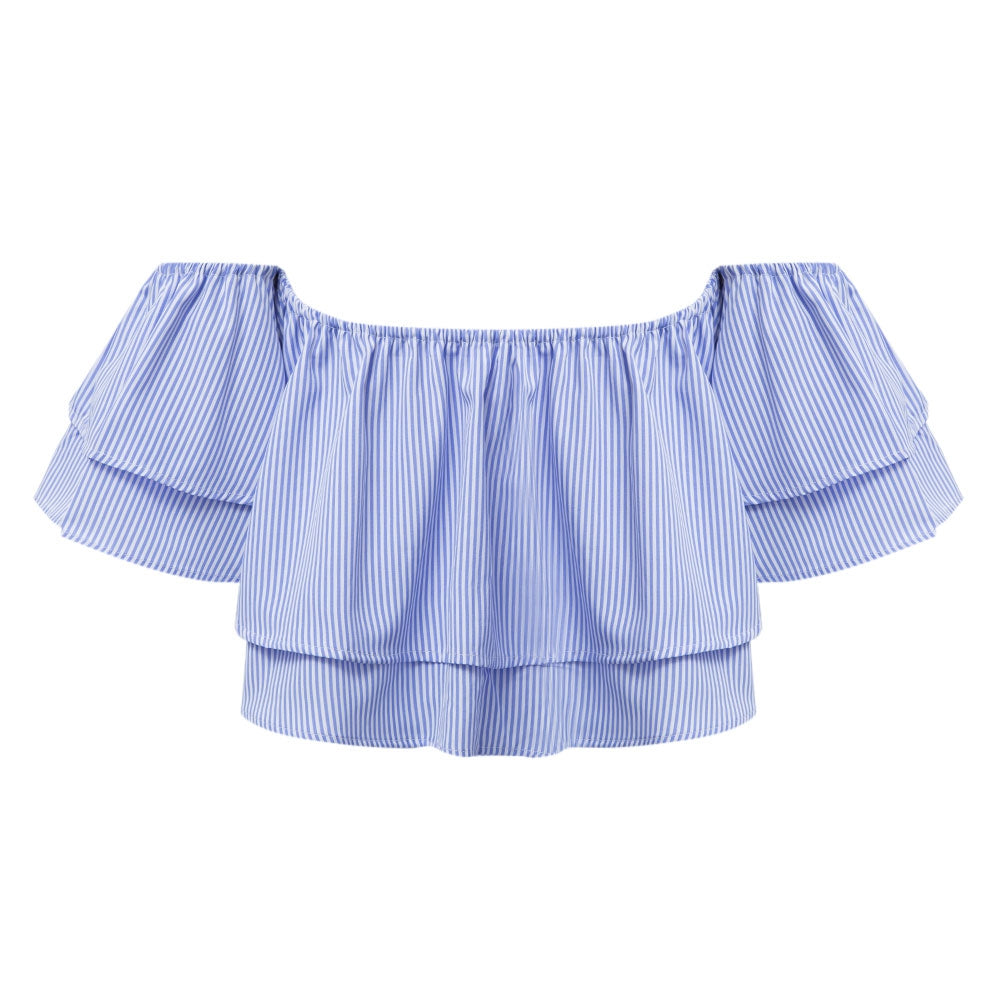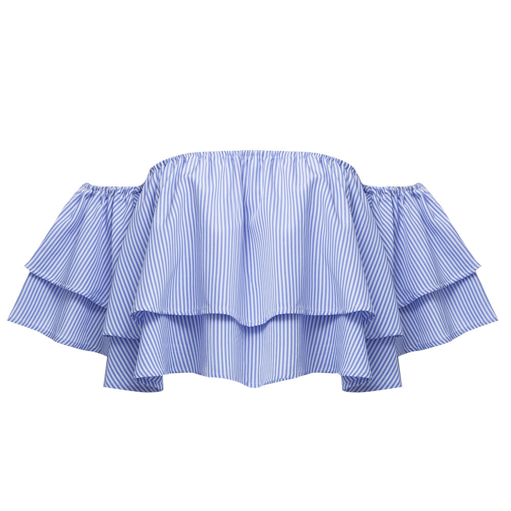 Sexy Off The Shoulder Striped Flounced Blouse for Women