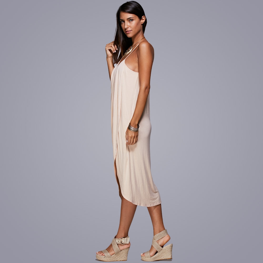 Sexy Spaghetti Strap Pure Color Pleated Wrap Dress for Women