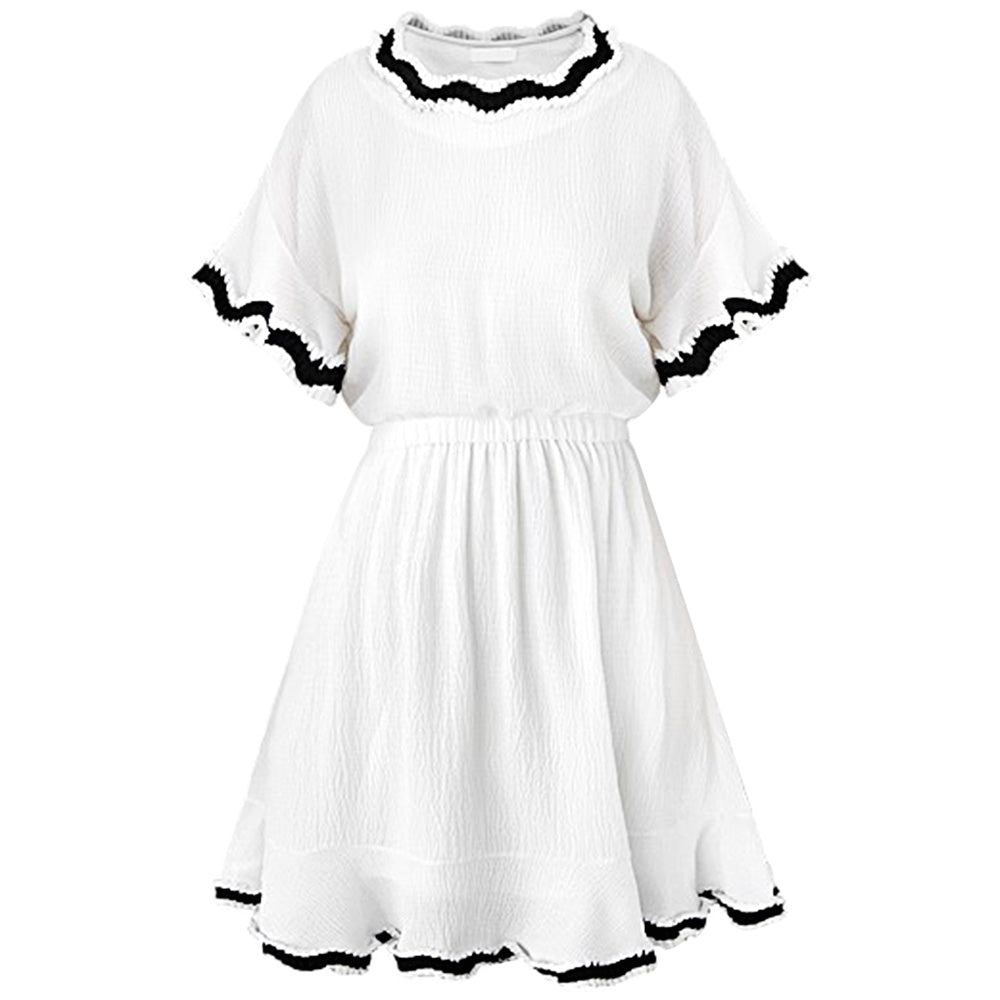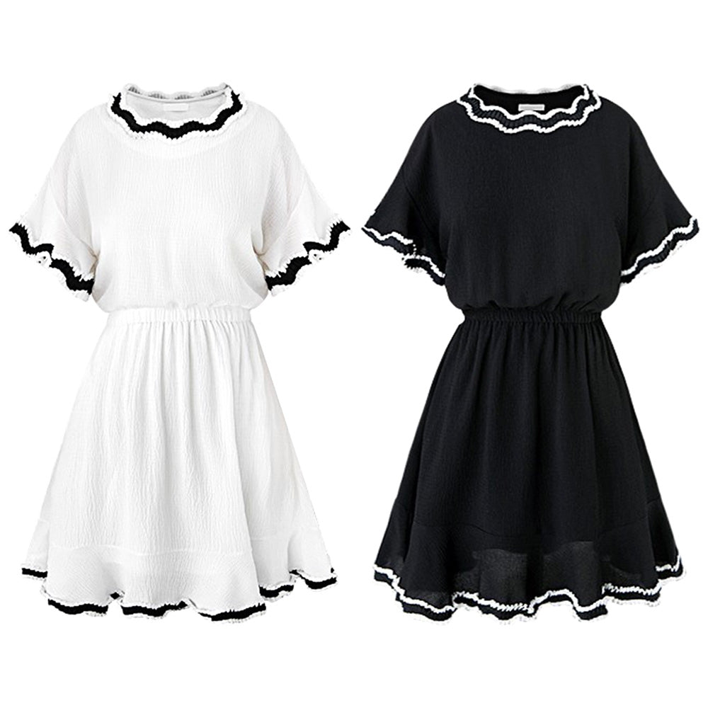 Sweet Round Collar Lacework Patchwork Slim Mini Dress for Women