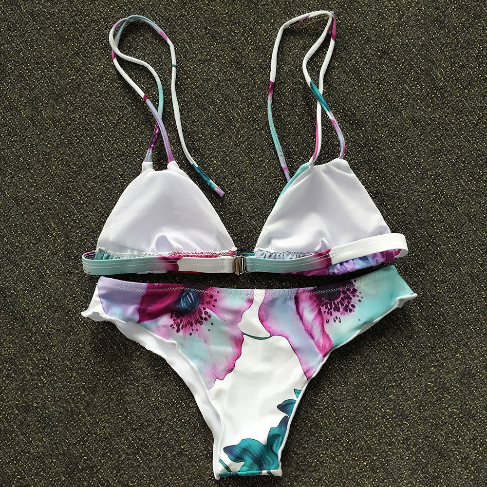 Cute Spaghetti Straps Floral Print Bikini Set For Women