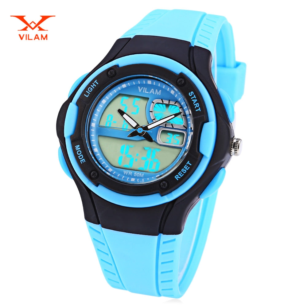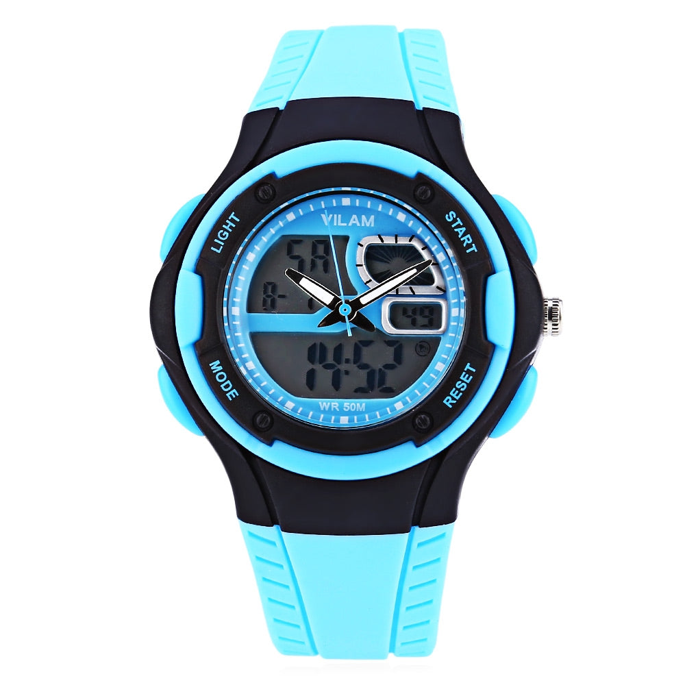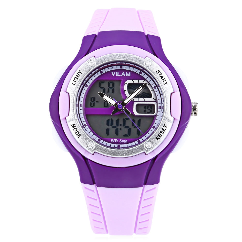VILAM Digital Quartz Dual Movt sports Watch, two modes as you wish to check time easily and clearly, ensures precise and punctual time. It comes with luminous pointer and LED light, much easier to check the time at night or where the light is not strong, making the night not dark. With multiple functions, such as date, day, no need to check your phone to get the calendar anymore. It also includes chronograph and alarm functions, convenient for your daily life. 50M water resistance guaranteed, no need to worry about water splashes or rain anymore ( not suitable for diving and snorkeling ).