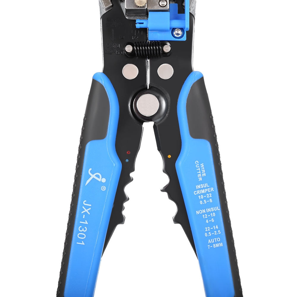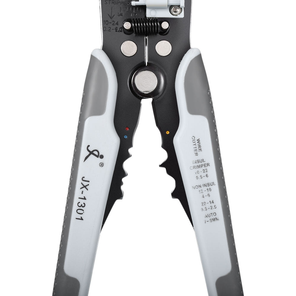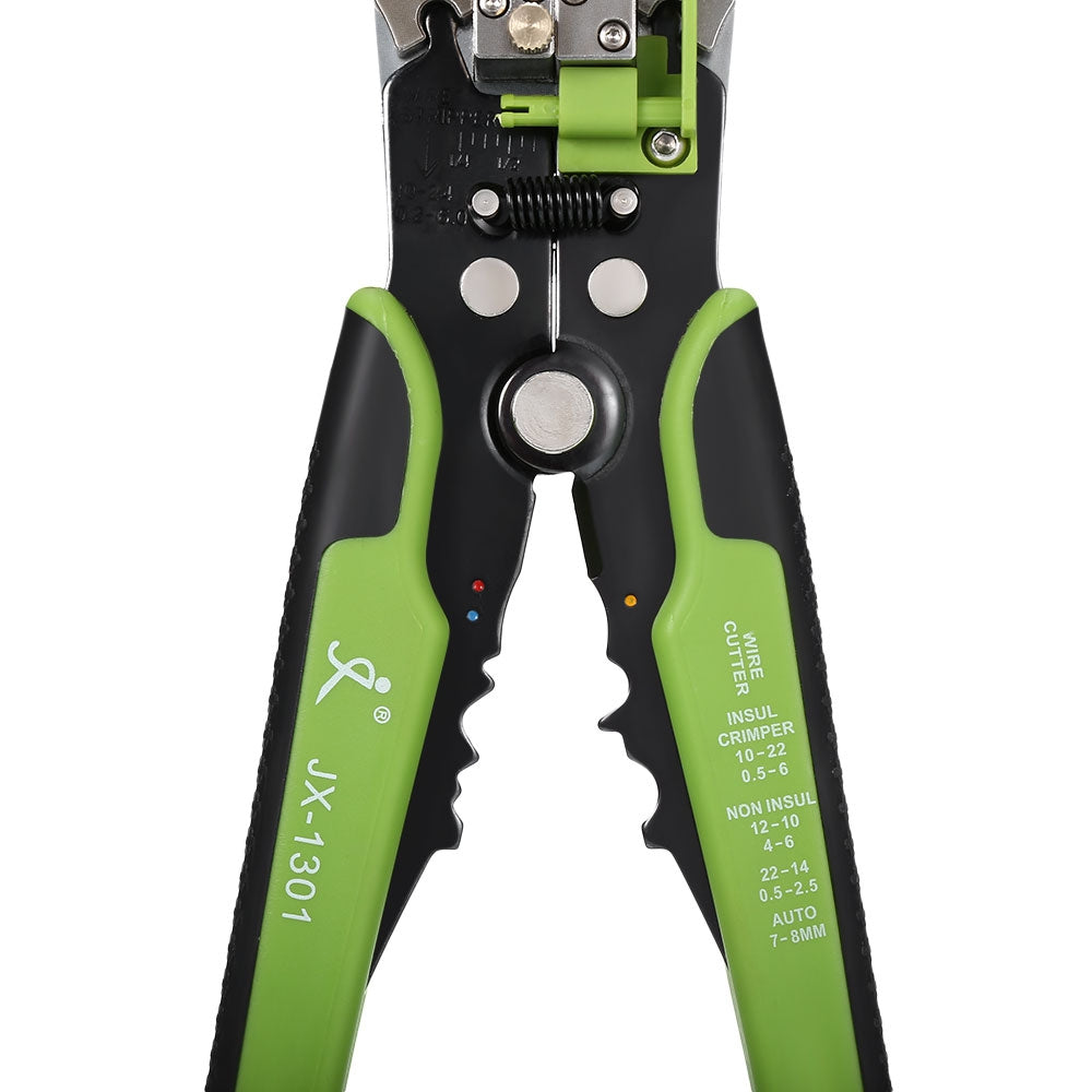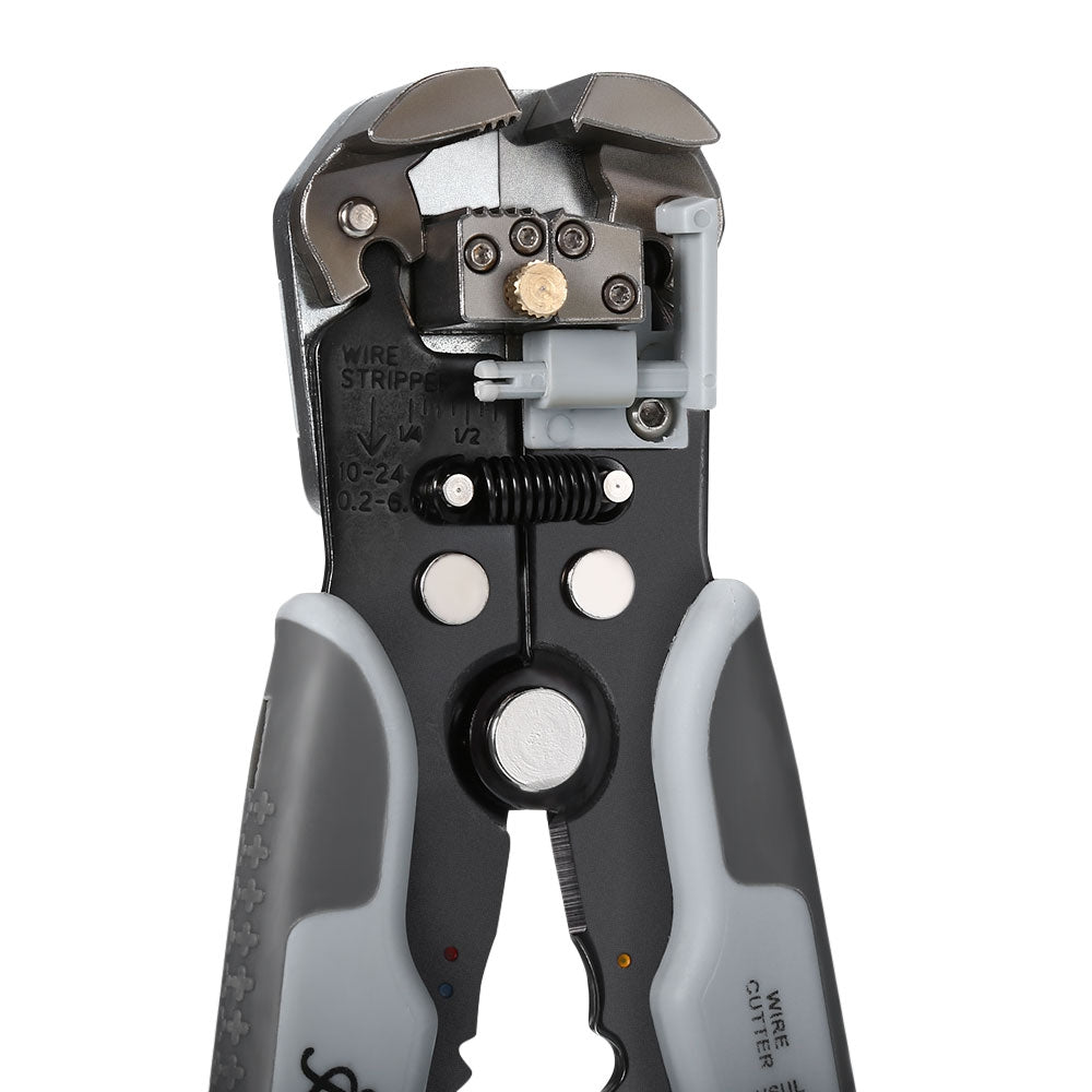 - SELF-ADJUSTING WIRE STRIPPER: Come with self-adjusting jaws to strip wire from 10-24 AWG (0.2-6MM²). The copper swivel knob is rotatable for precision adjustment of the two machined jaws to apply to different cables, and the adjustable gauge/stopper controls the length of core wire from 1/4” to 3/4”.