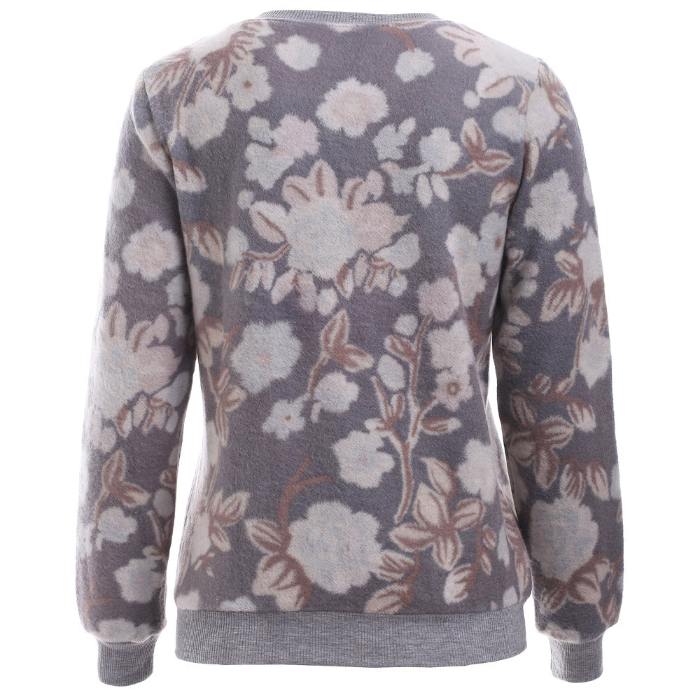 Casual Round Neck Floral Pattern Flocking Women's Sweatshirt