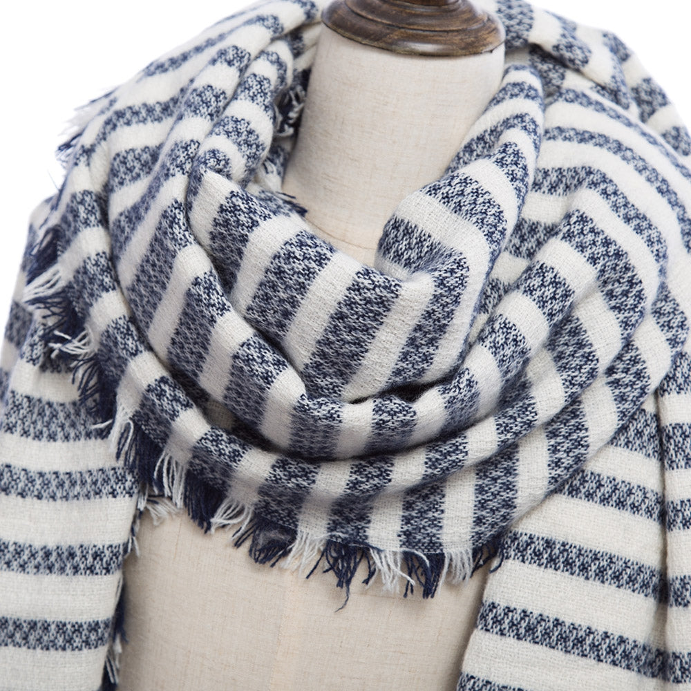 Vintage Oversize Stripe Knitting Ladies Warm Scarf