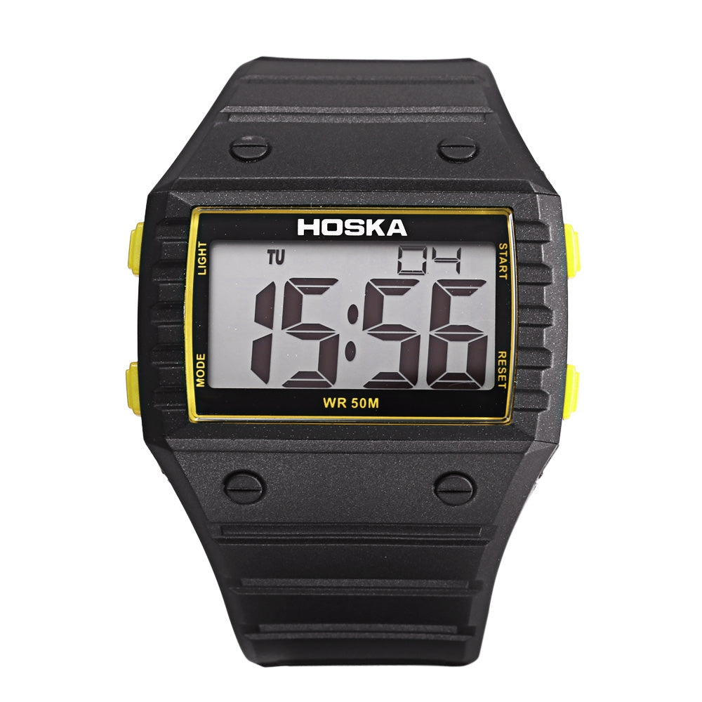 HOSKA H033B Children Digital Watch Alarm Chronograph Day LED Display Rectangle Dial 5ATM Wristwatch
