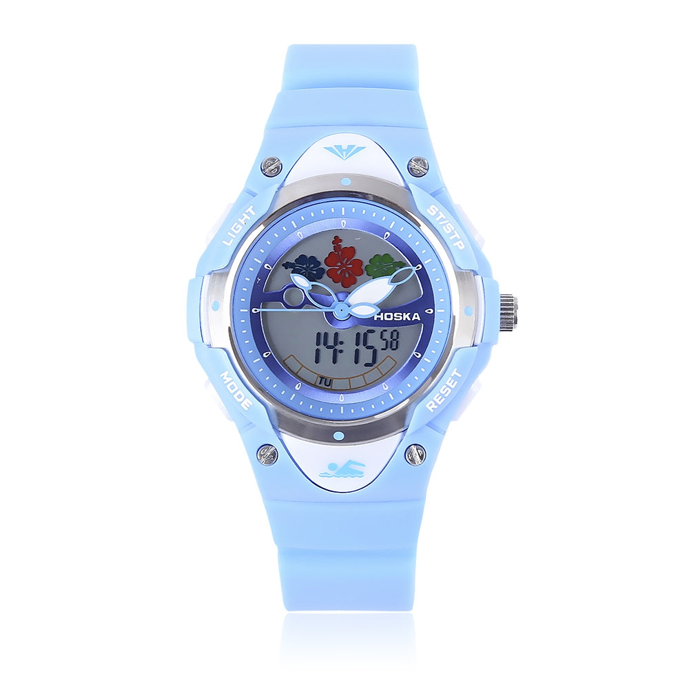 HOSKA HD023S Dual Movt Children Quartz Digital Watch Luminous Date Day Display 5ATM Wristwatch