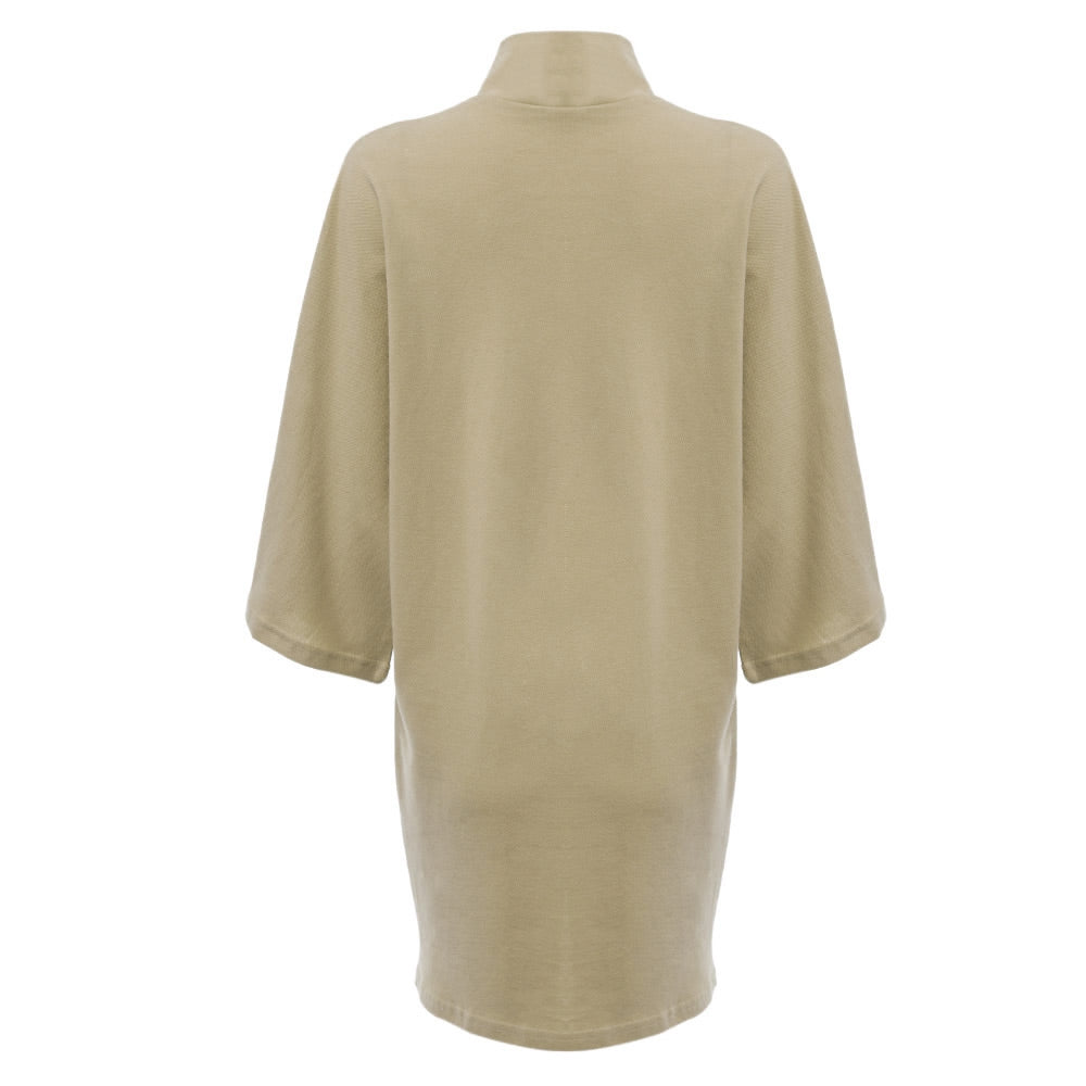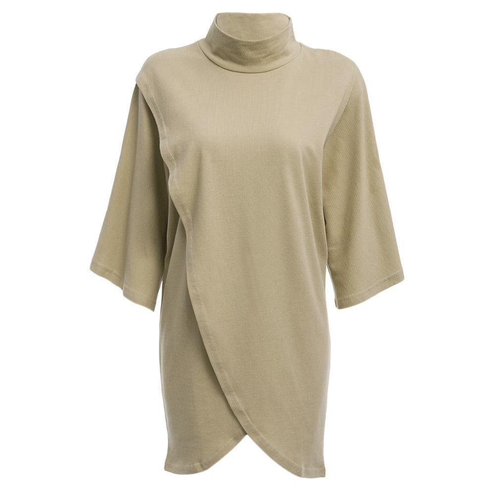 Trendy Stand Collar Half Sleeve Pure Color Asymmetrical Women Dress