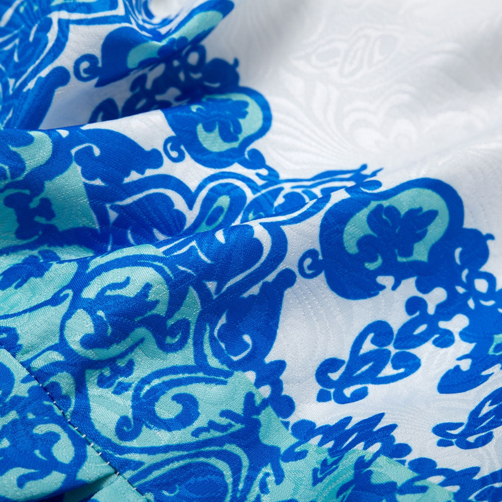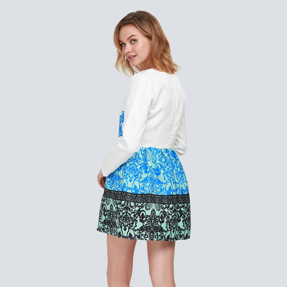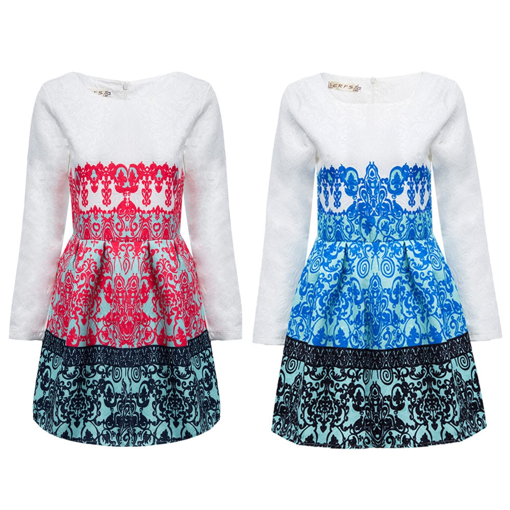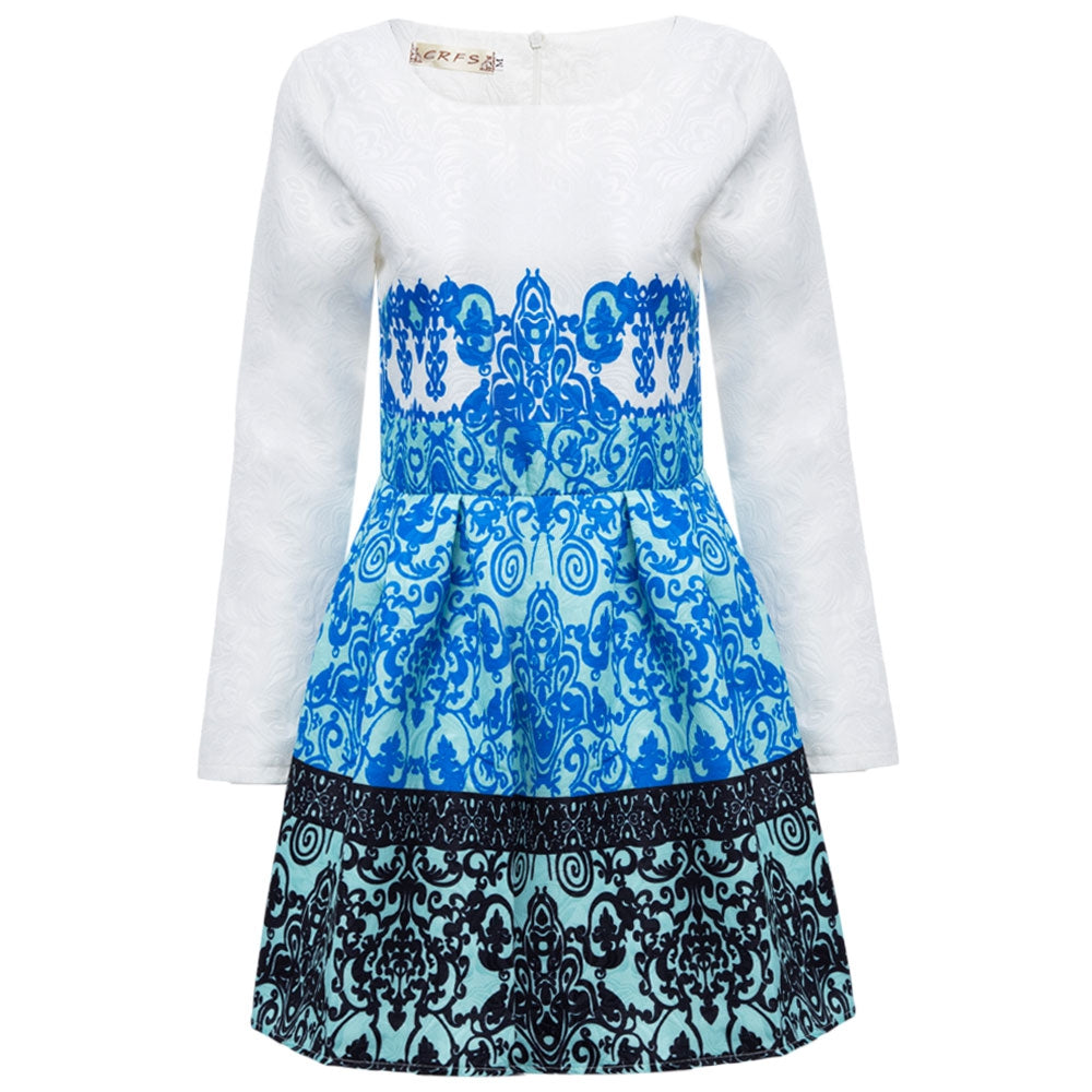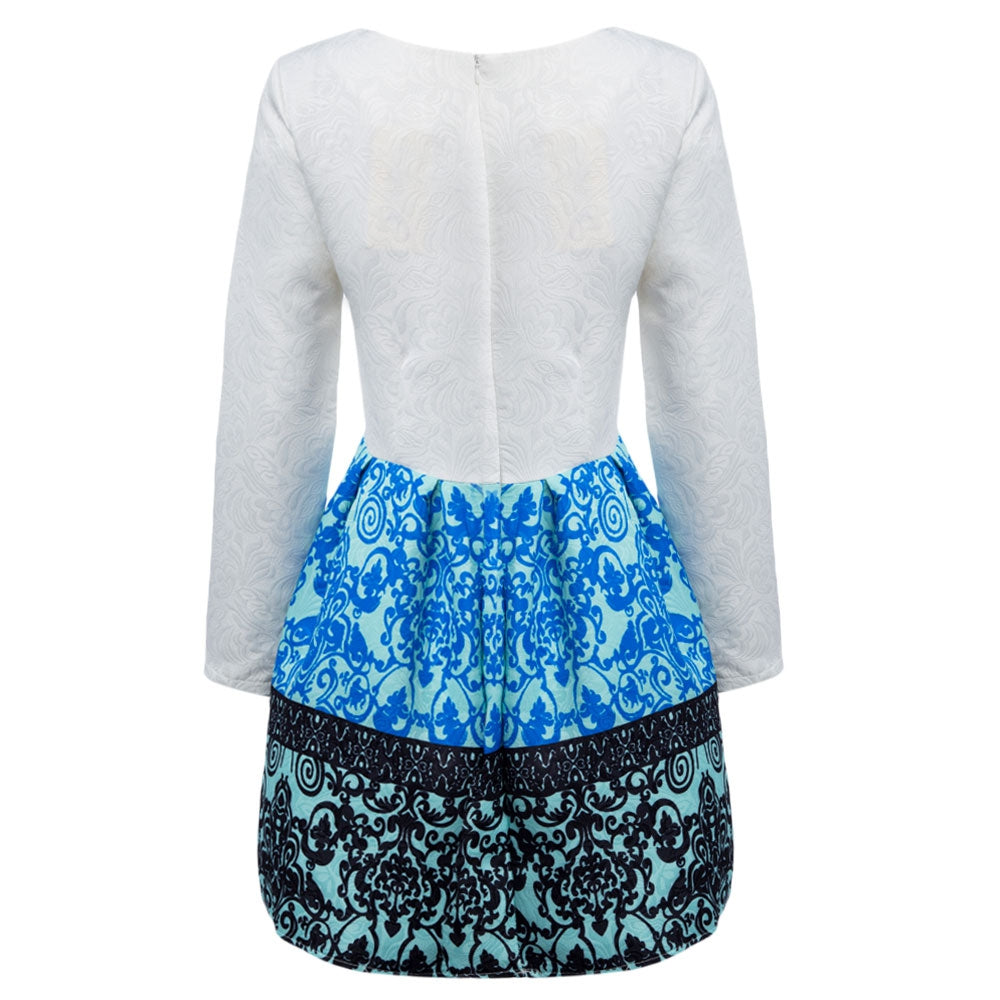Vintage Round Neck Long Sleeve Print A-line Bottom Dress for Ladies