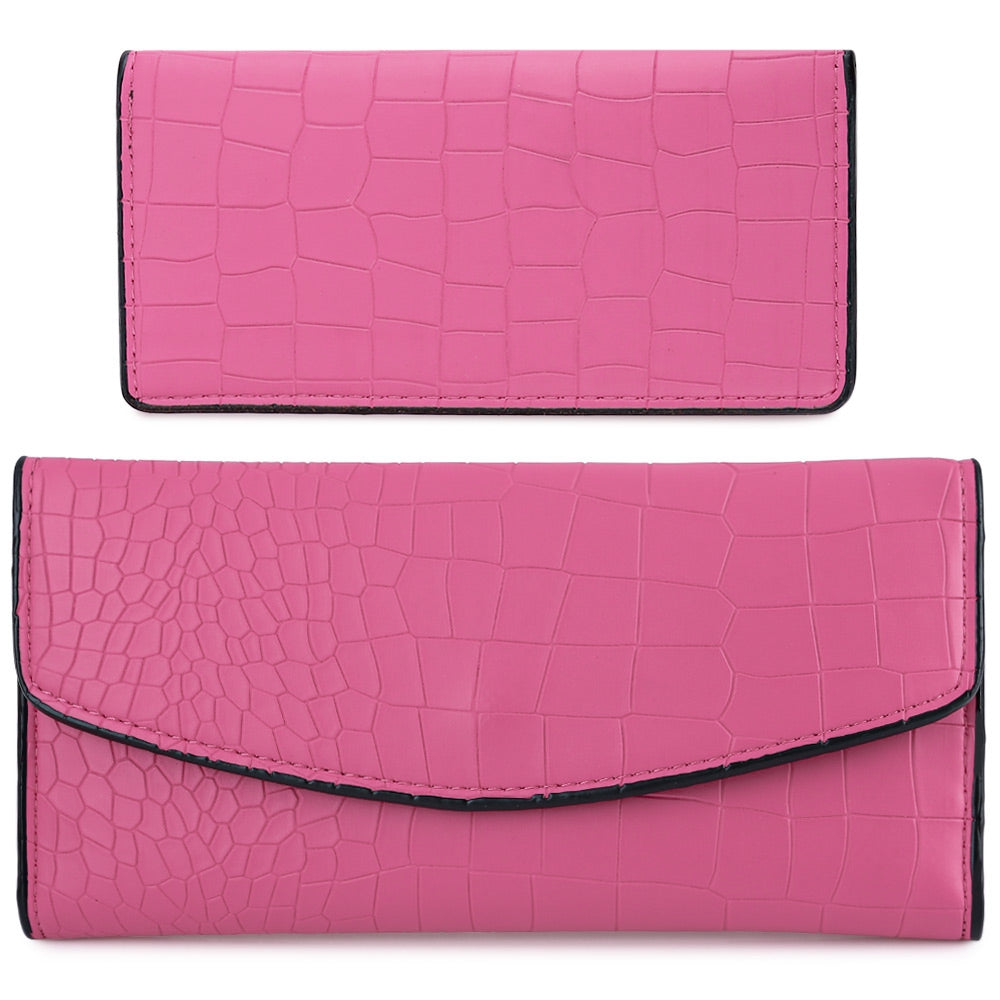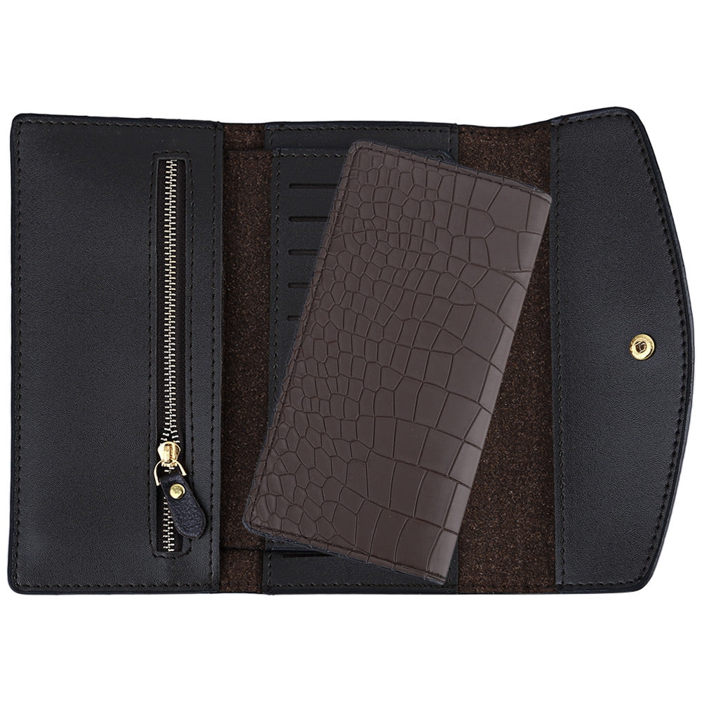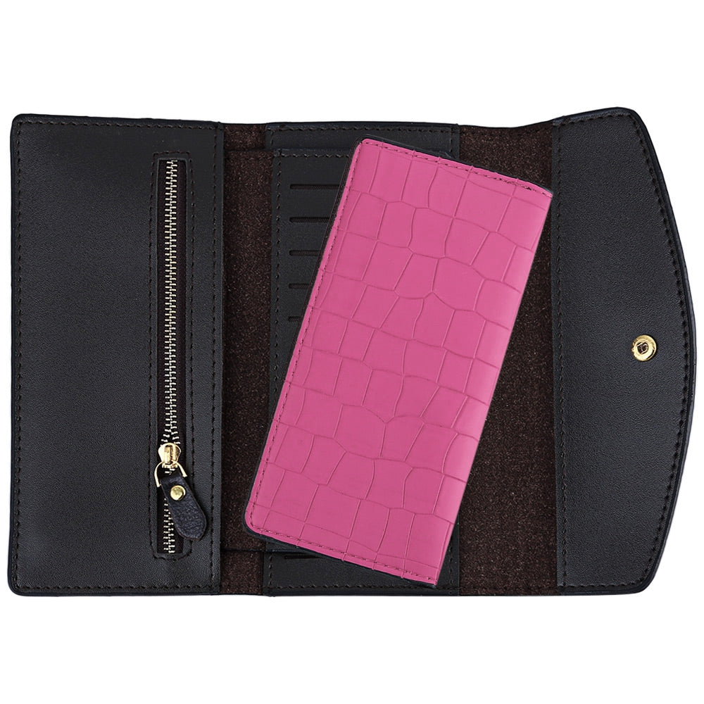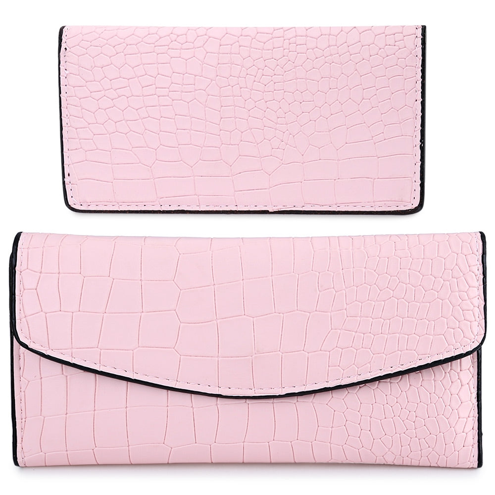 Women Fashionable Crocodile Pattern Solid Color Party Business Detachable Cash Card Holder Clutch Bag Long Wallet