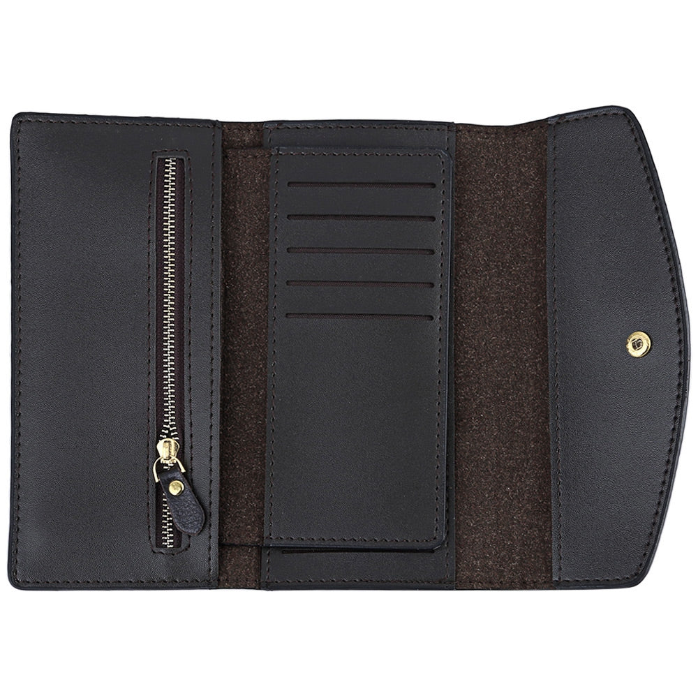 The main structure of this purse has 5 card slot pockets, 1 photo slot pocket, 2 interlayers, 1 zipper pocket, and the detachable one has 10 card slot pockets and 2 interlayers, which is accommodating card, cash, photo, coin, etc.