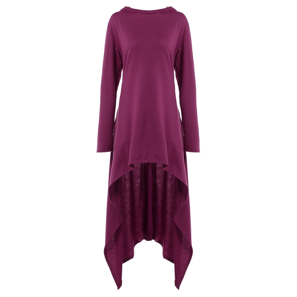 High Low Hooded Dress with Long Sleeves