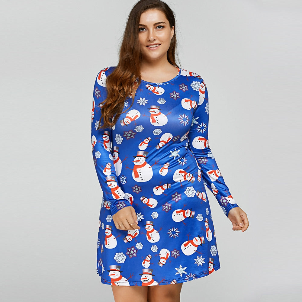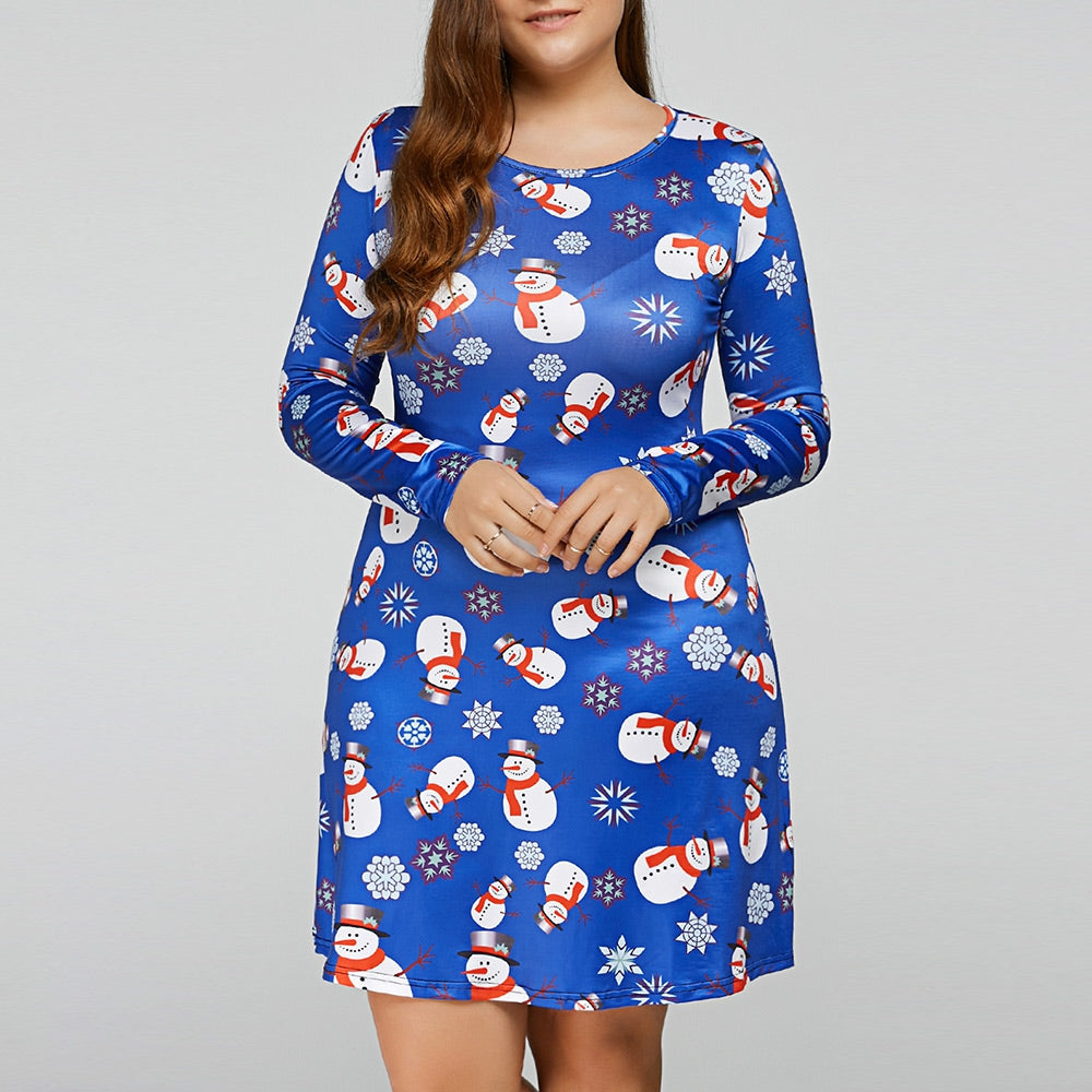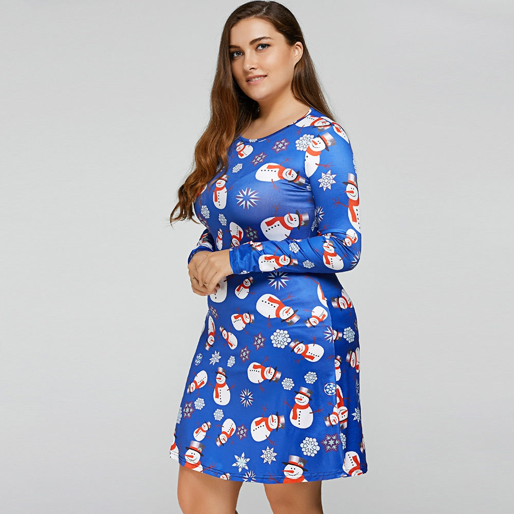 Christmas Snowman Print Long Sleeves Ugly Swing Dress