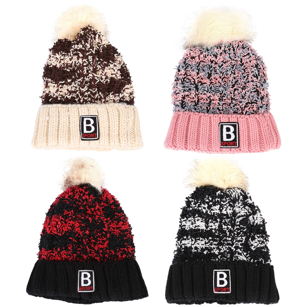 Stylish Color Block Letter Print Venonat Ladies Warm Plush Knitted Hat