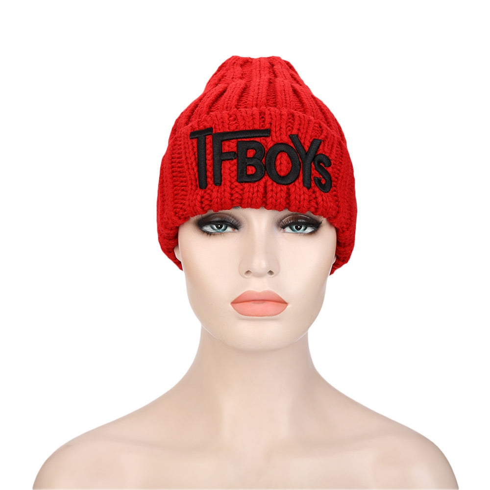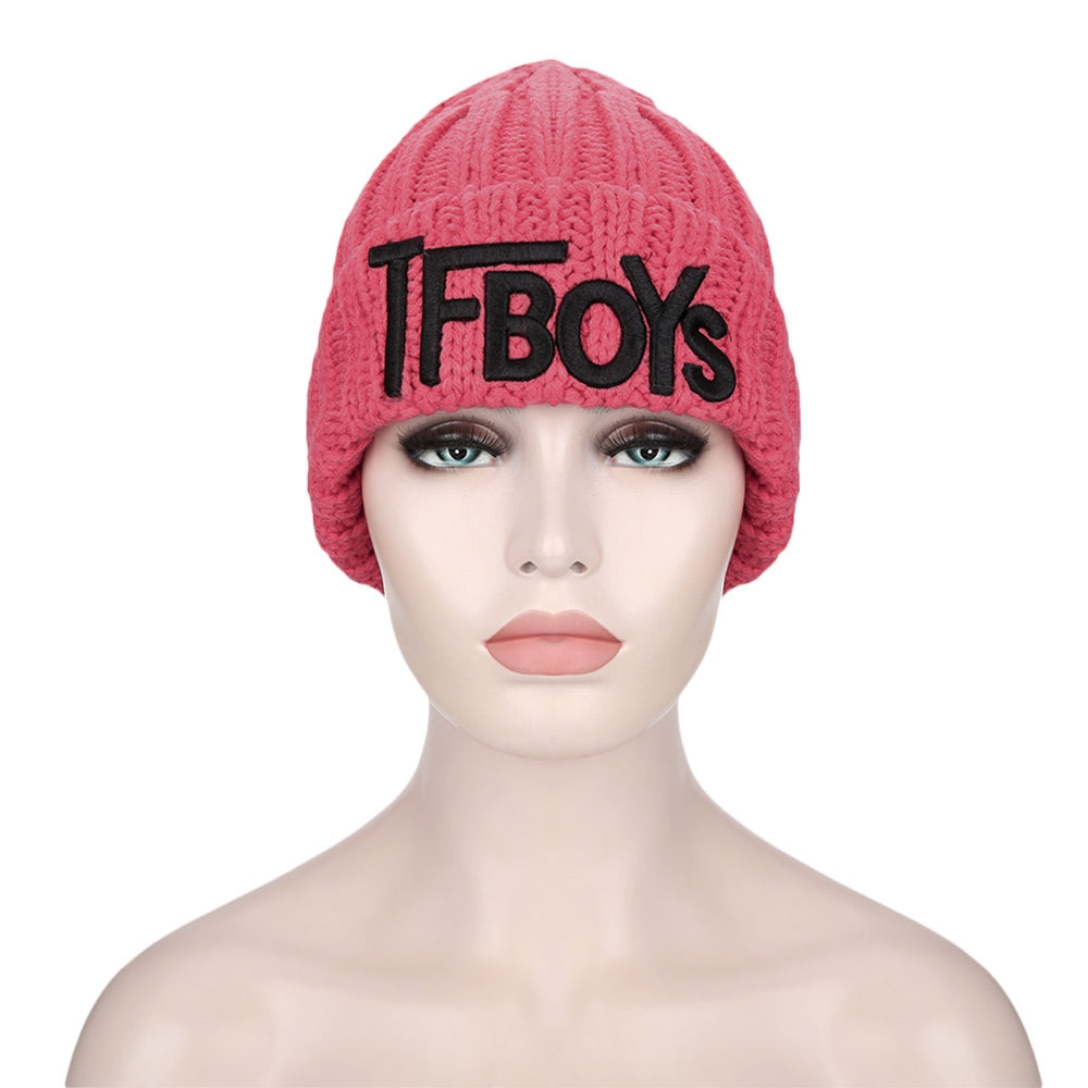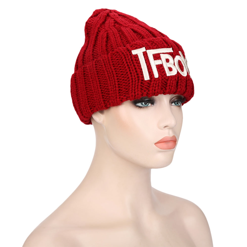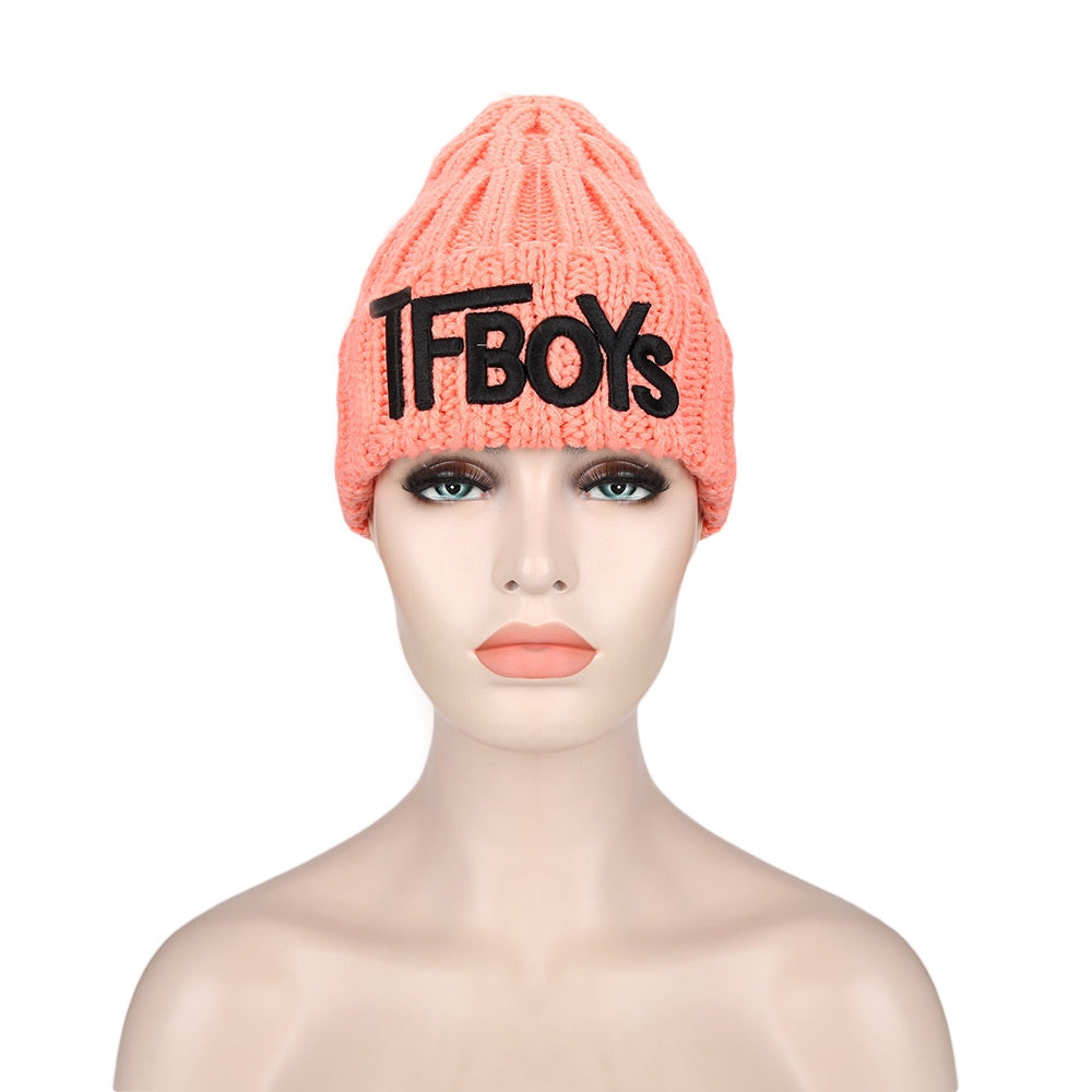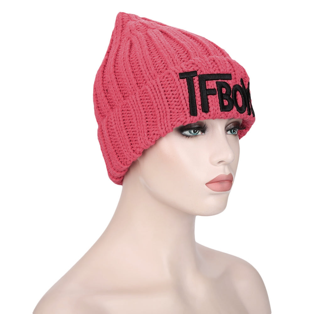 Stylish Letter Print Pure Color Ladies Warm Knitted Hat