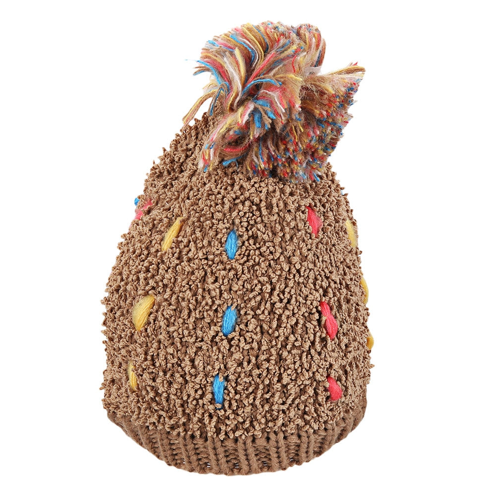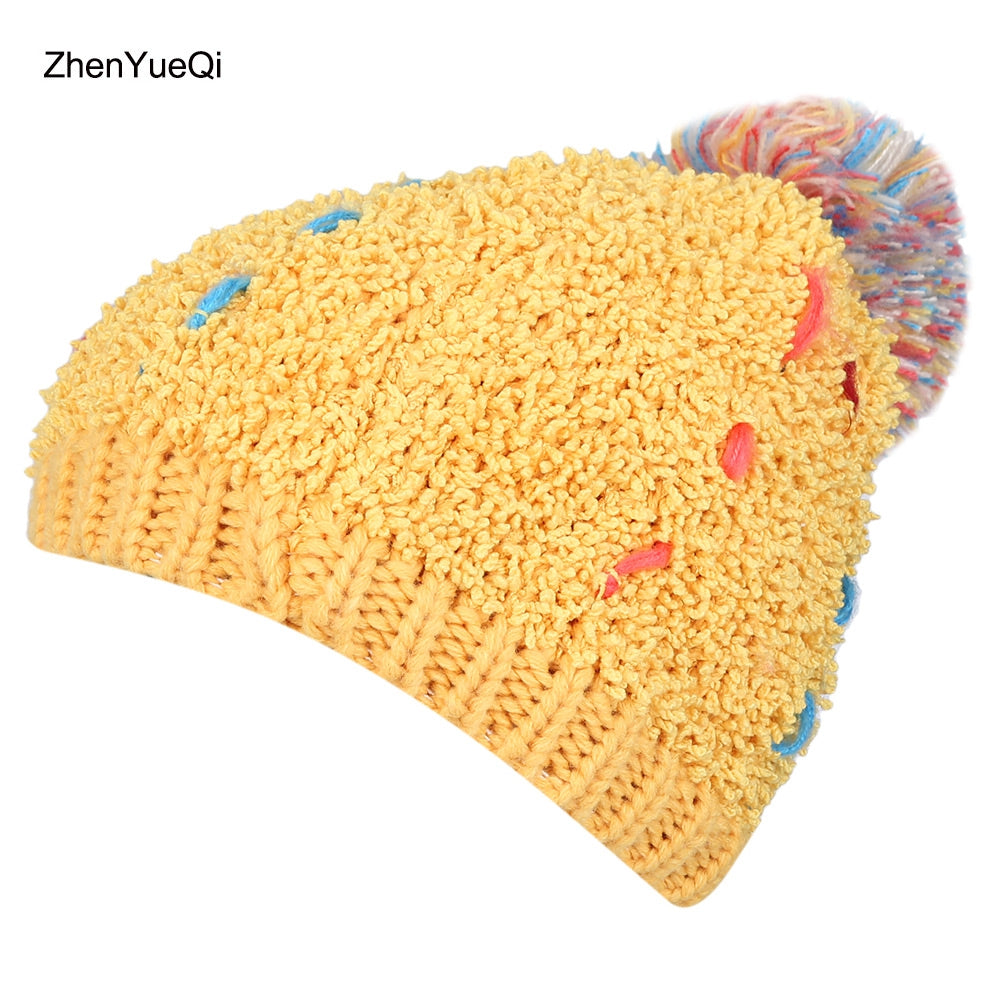 ZhenYueQi Winter Warm Mixed Color Knitted Hats Fluffy Plush Beanie Street Chic for Women