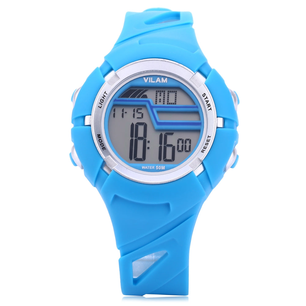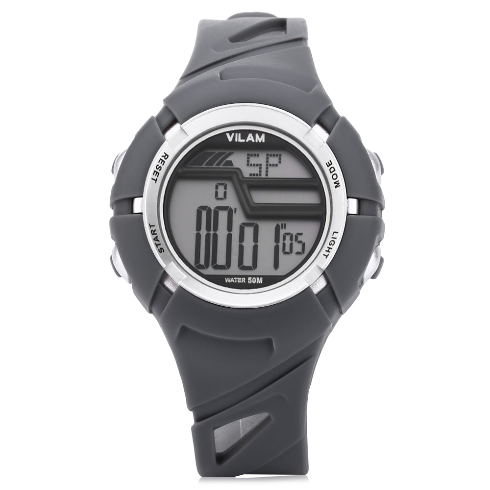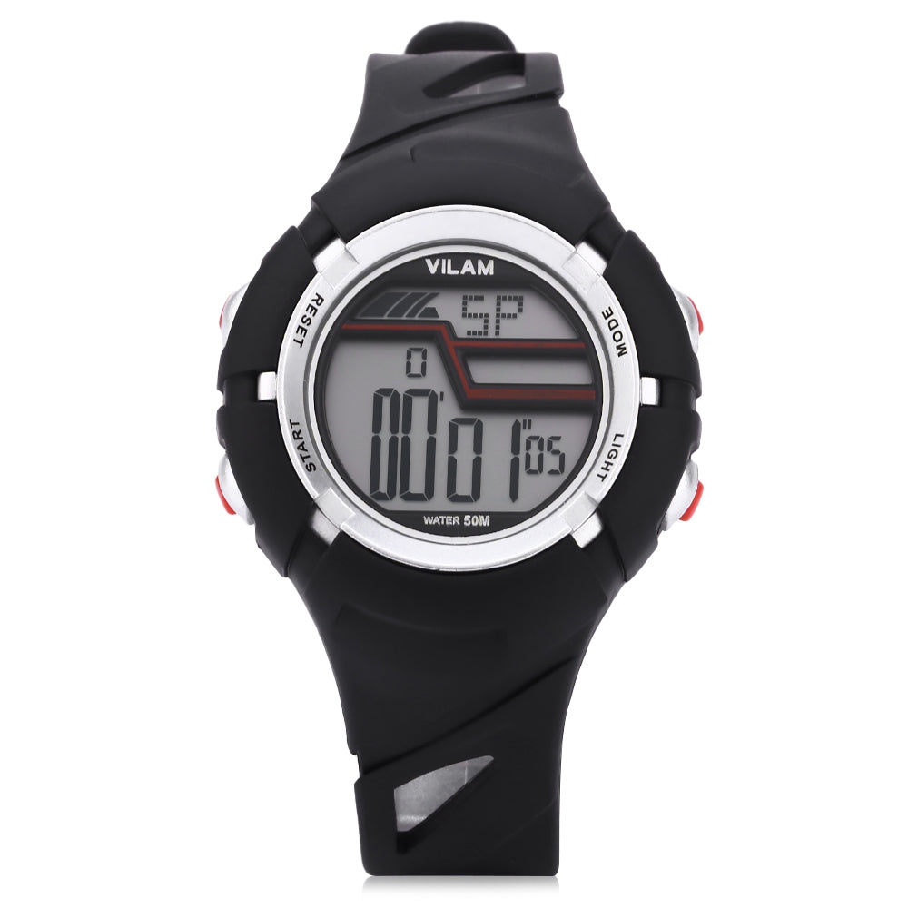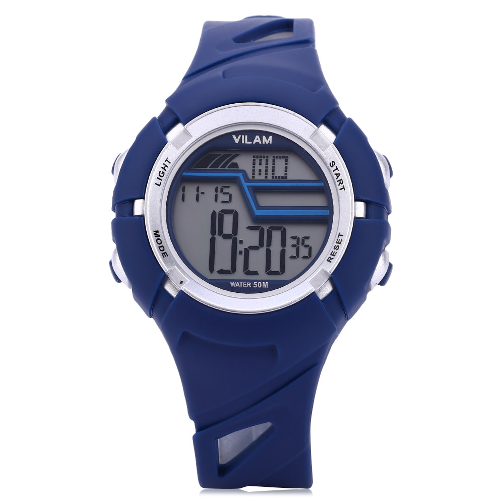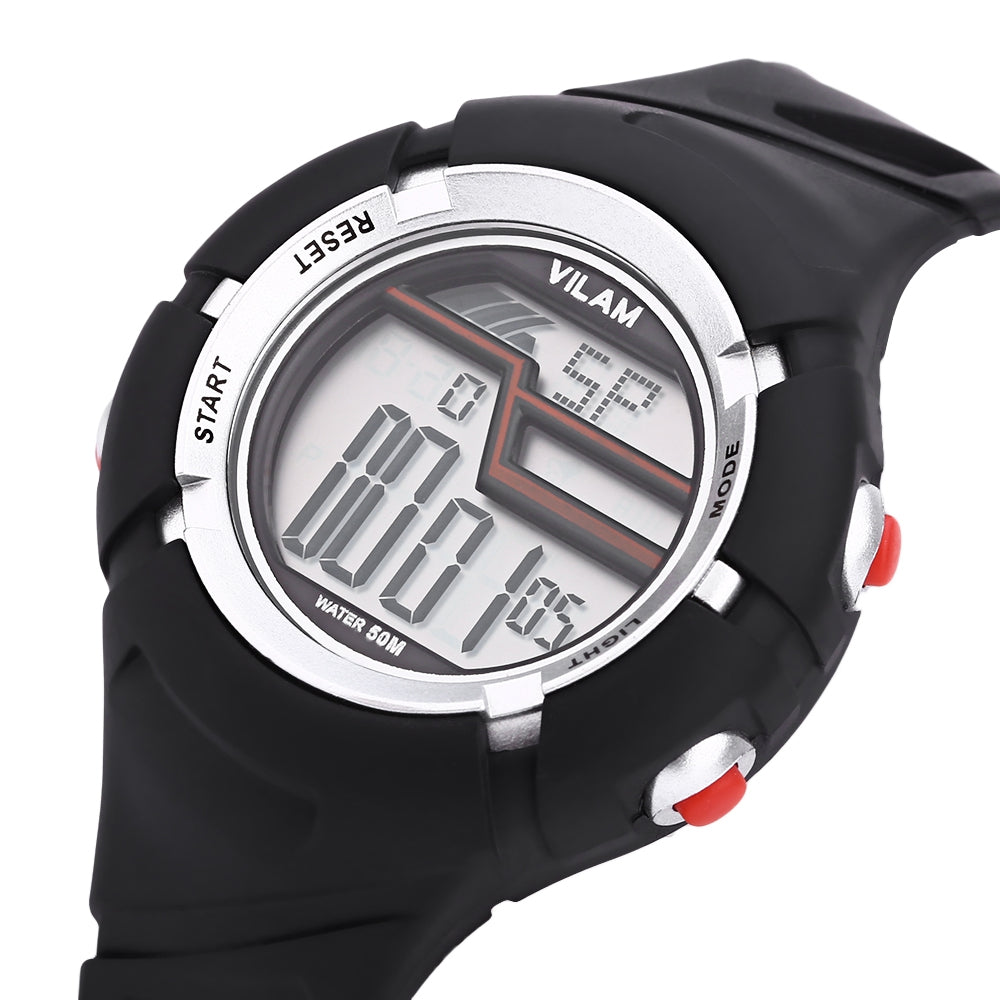 VILAM 08011 Digital Sports Watch LED Light Date Day Chronograph Display 5ATM Wristwatch