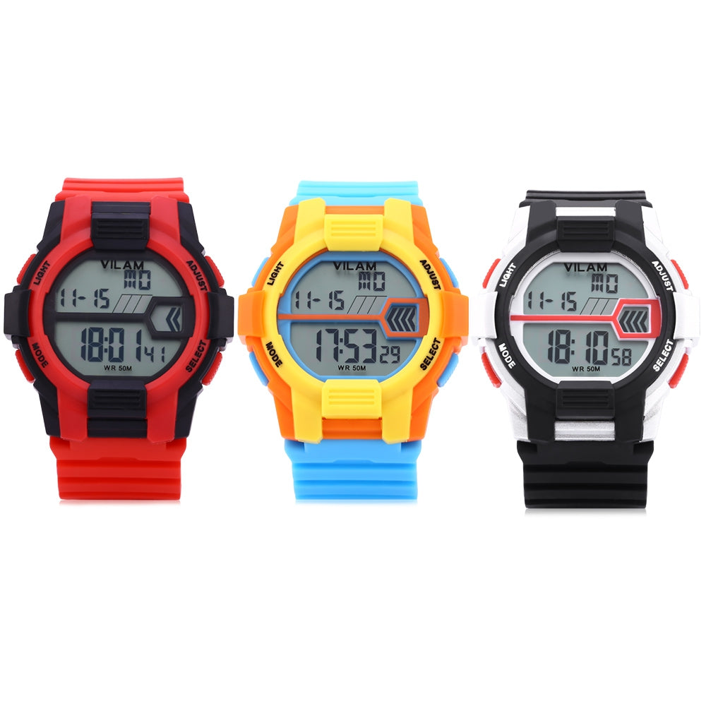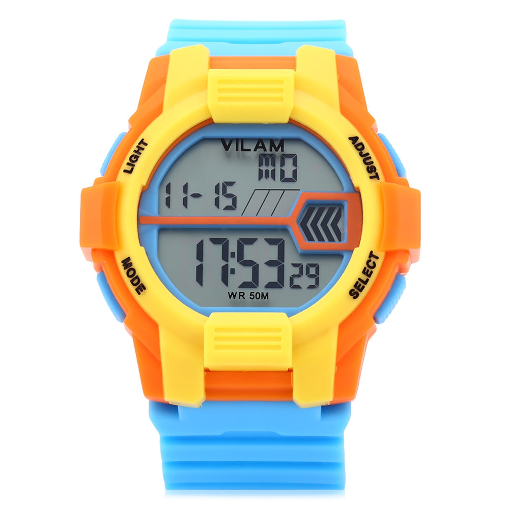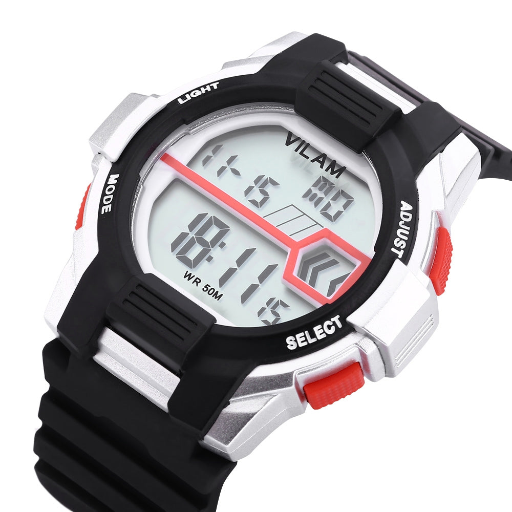 VILAM 11033D Digital Sports Watch LED Light Date Day Chronograph Display 5ATM Wristwatch