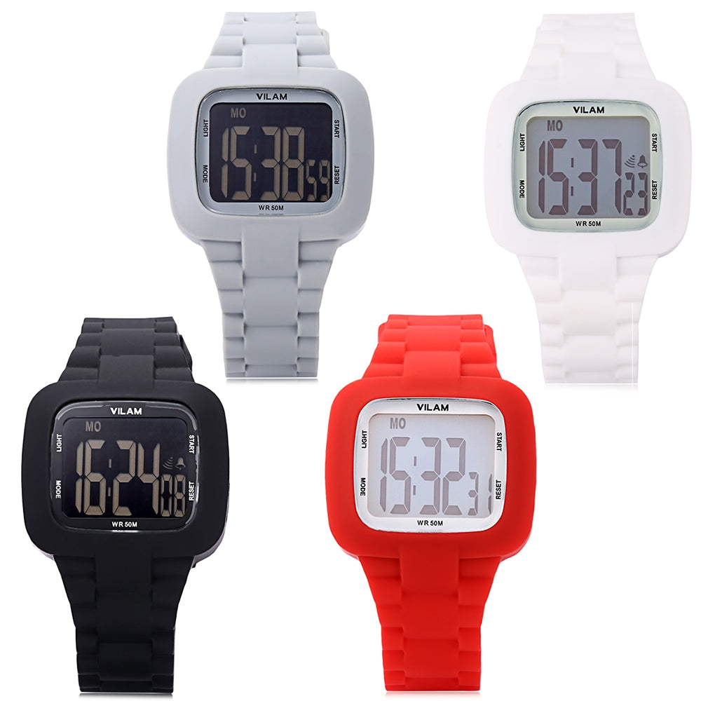 VILAM 10052 LED Digital Watch Alarm Date Day Chronograph 50m Water Resistance Sports Wristwatch