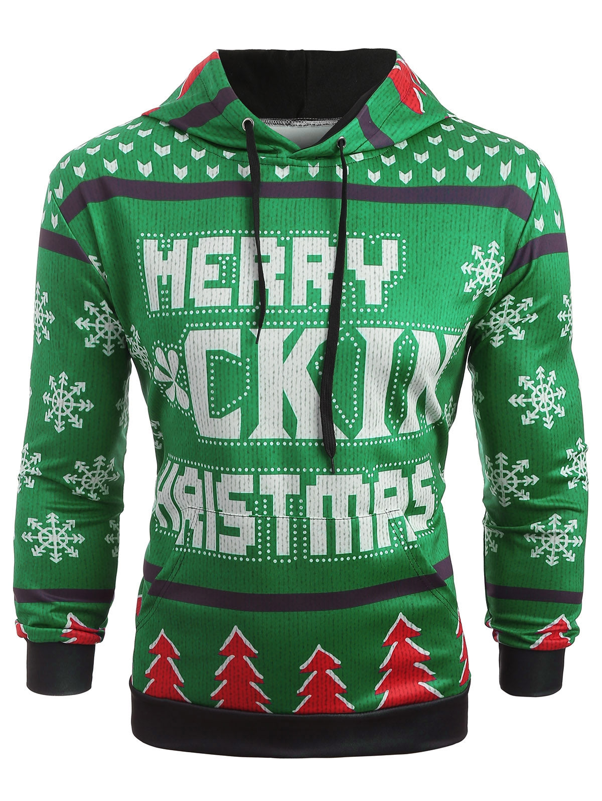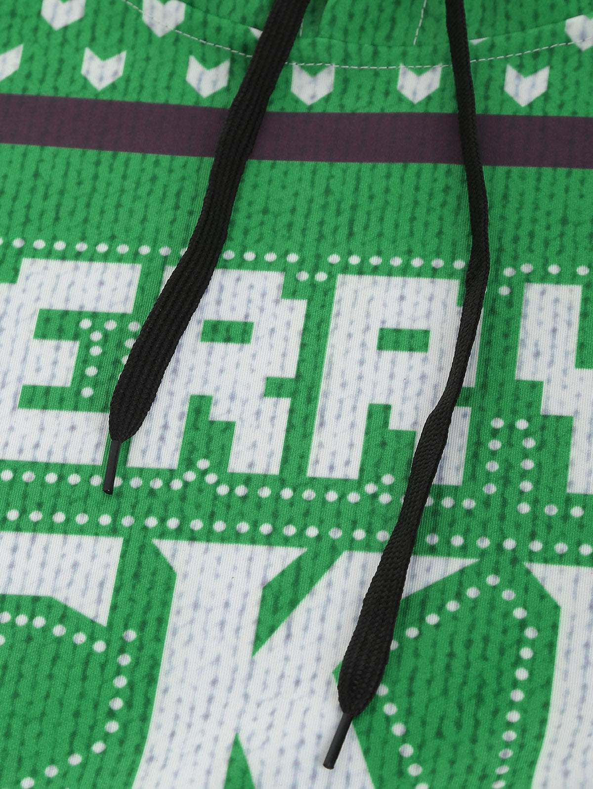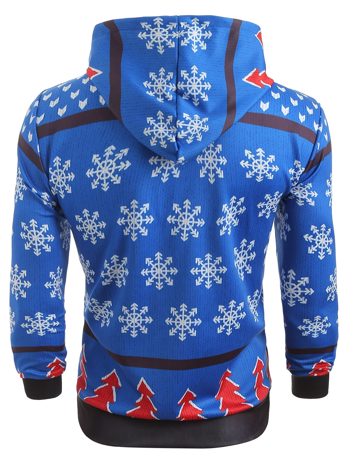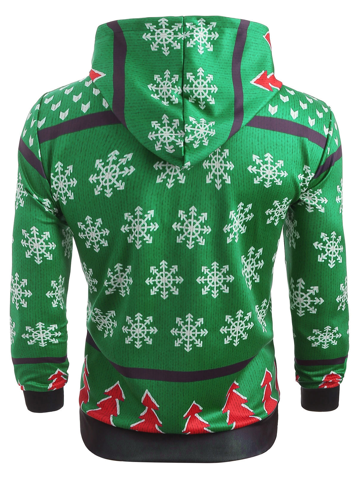 Hooded Christmas Tree and Snowflake Printed Hoodie