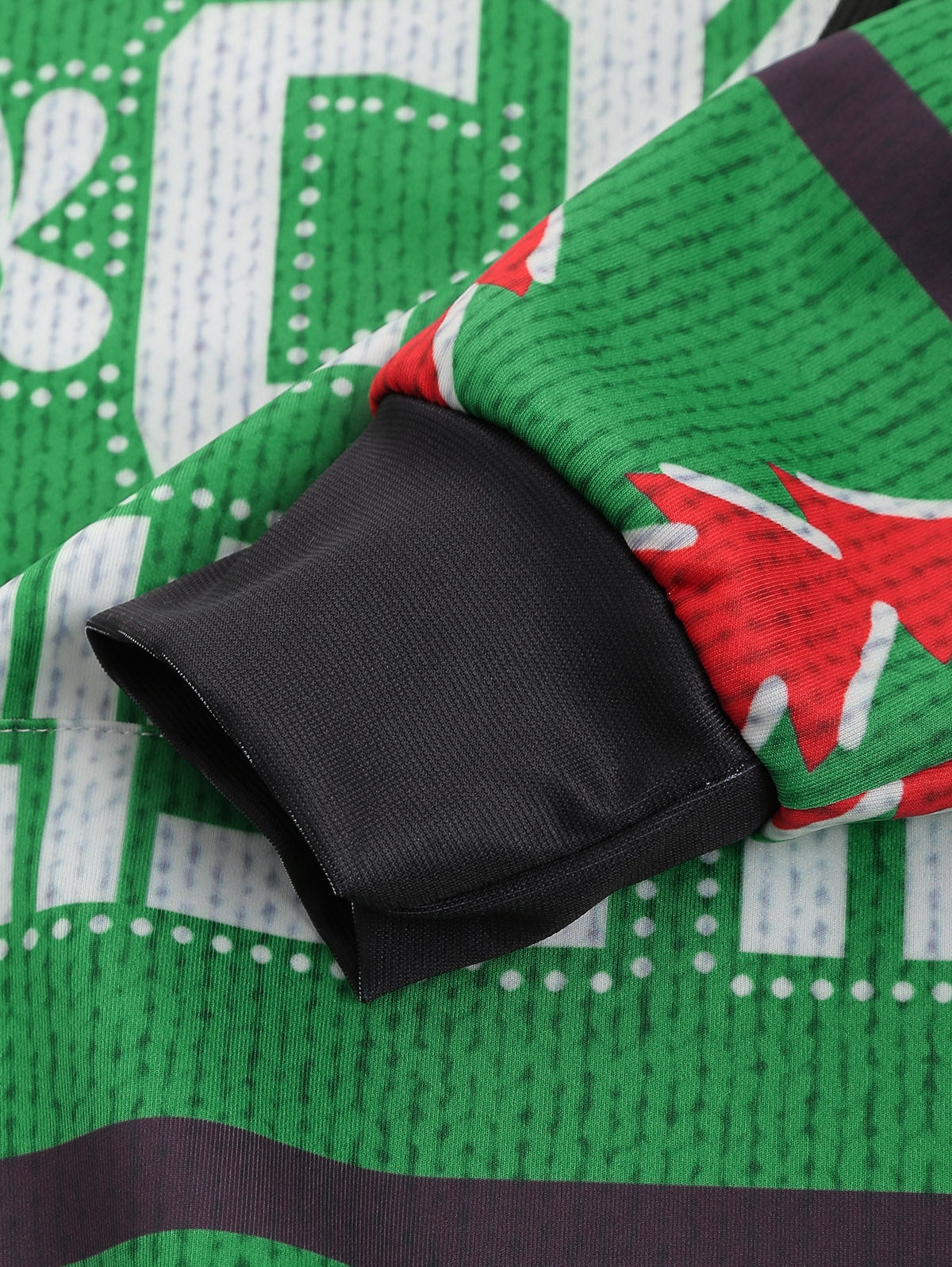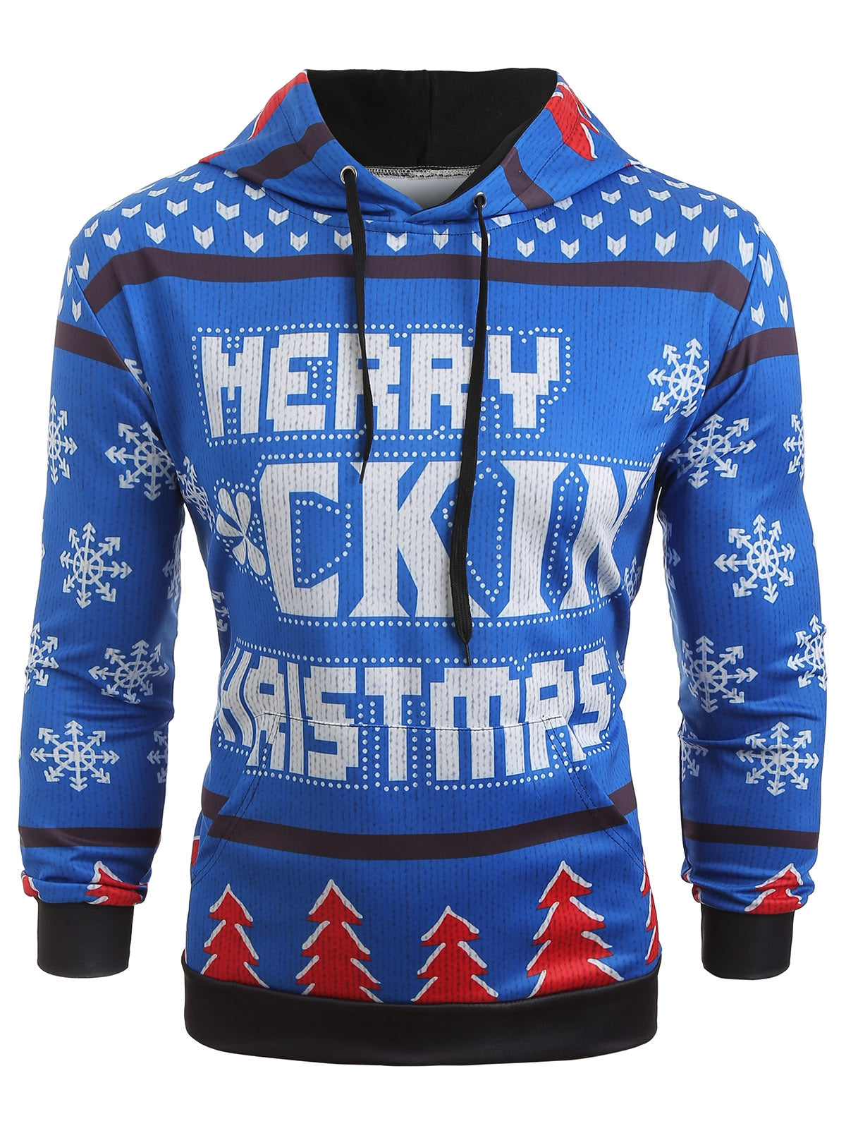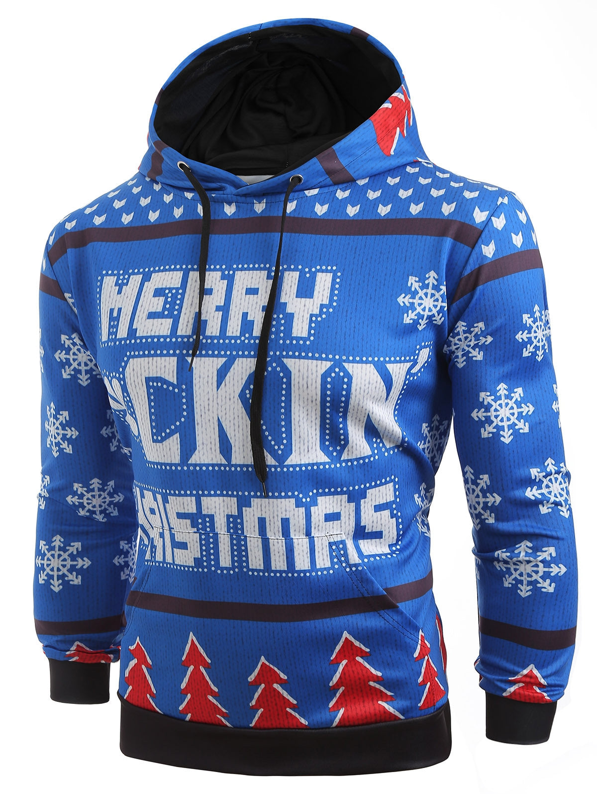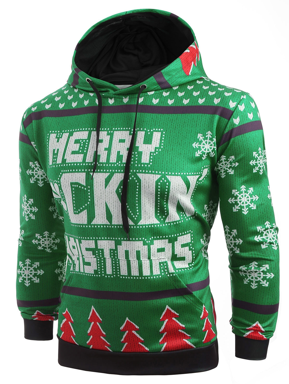 Hooded Christmas Tree and Snowflake Printed Hoodie