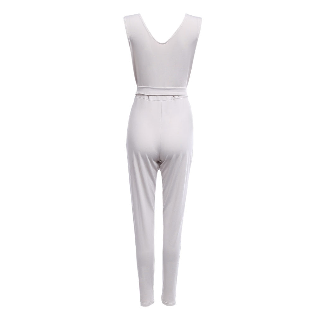Sexy Plunging Sleeveless Waist Bandage Design Sheath Romper for Ladies
