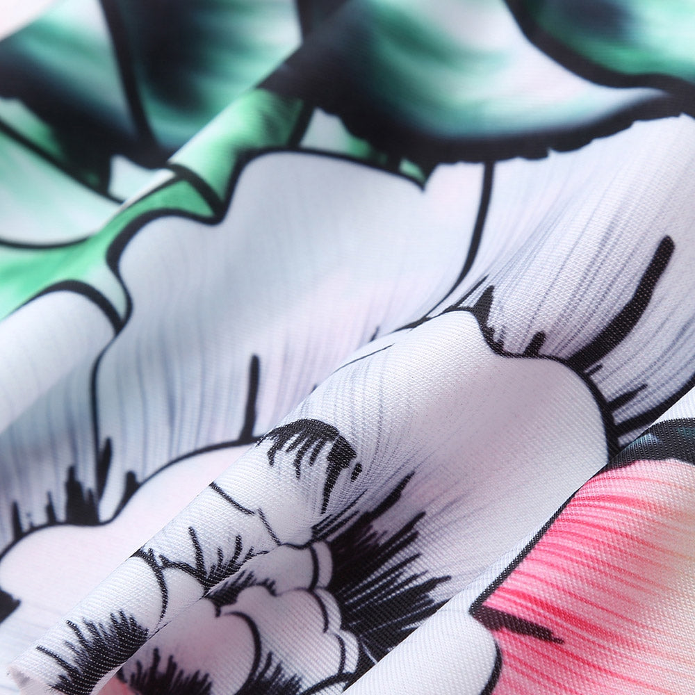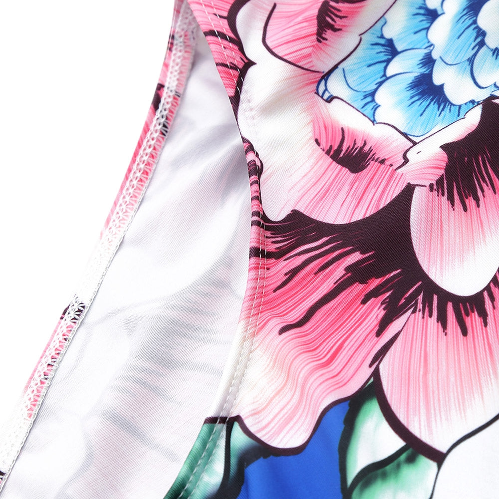 Square Neck Flral Print Swimsuit