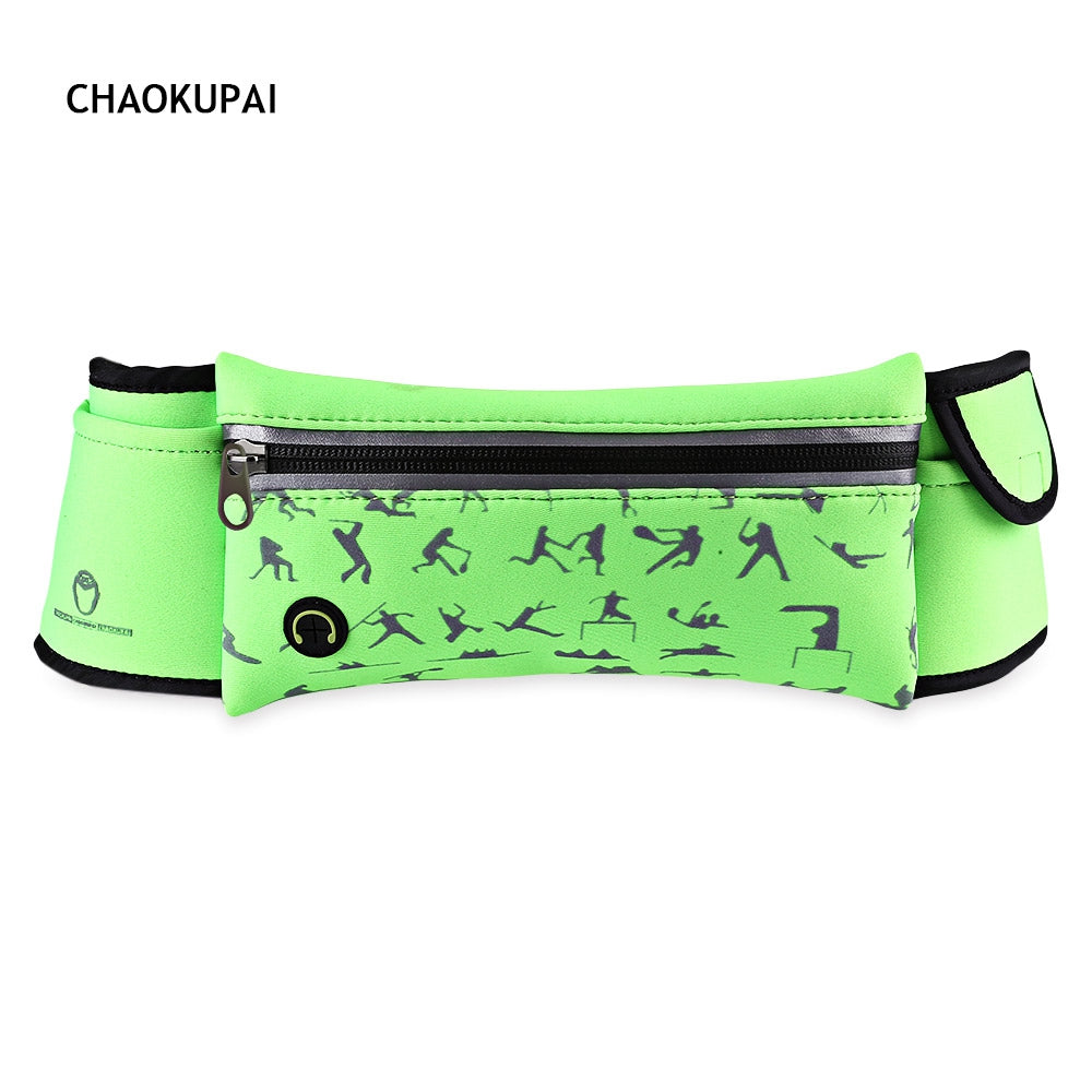 CHAOKUPAI Reflective Strips Headphone Jack Sports Waist Bag