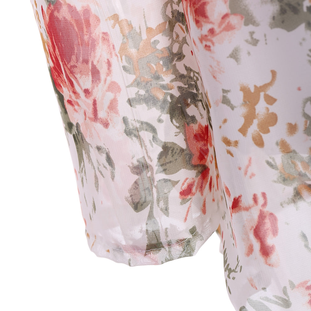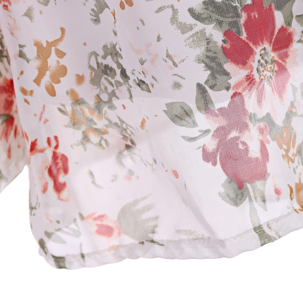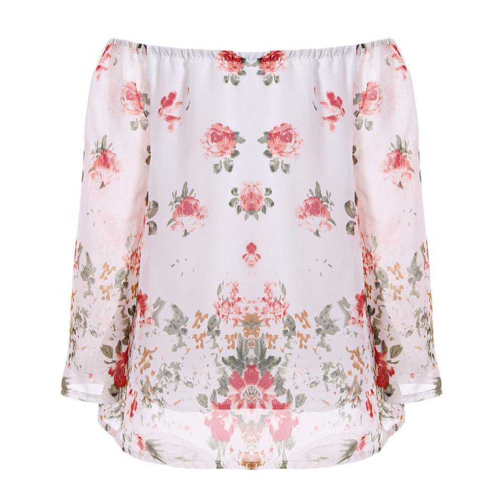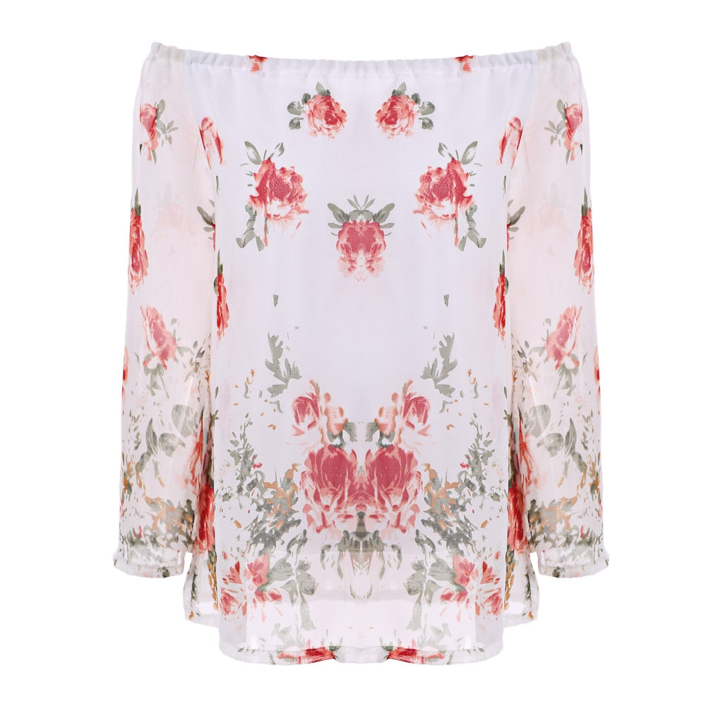 Long Sleeve Off The Shoulder Floral Women Chiffon Blouse