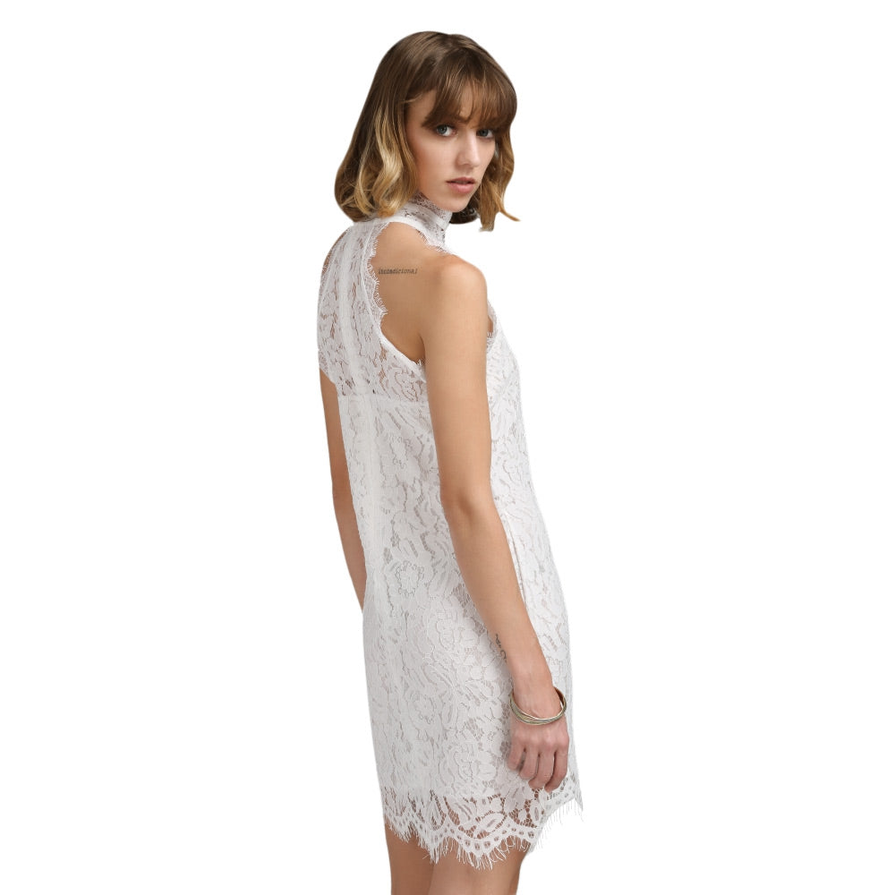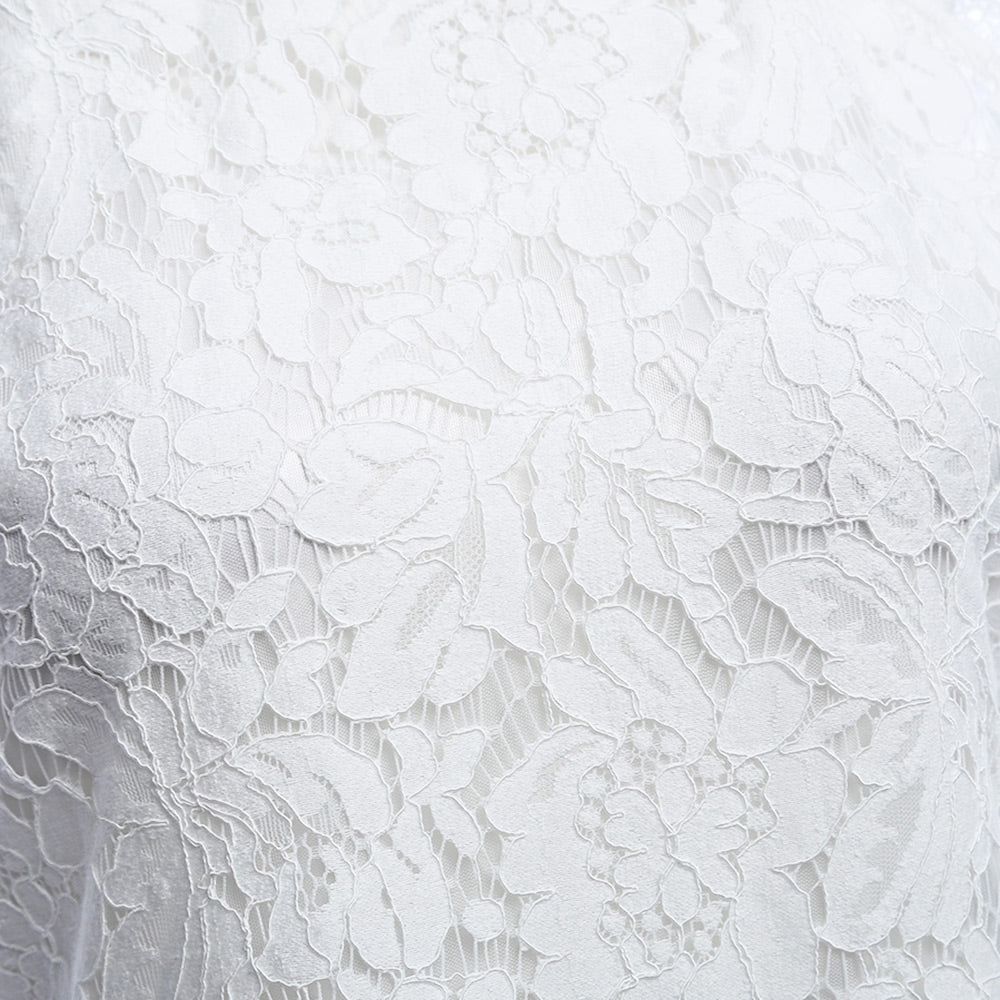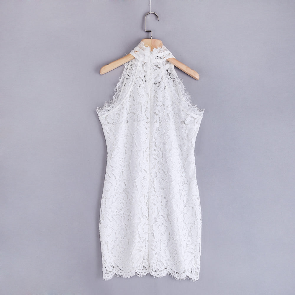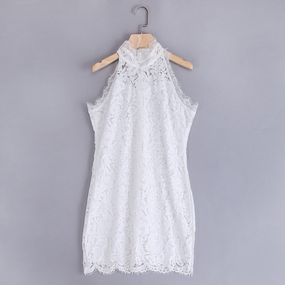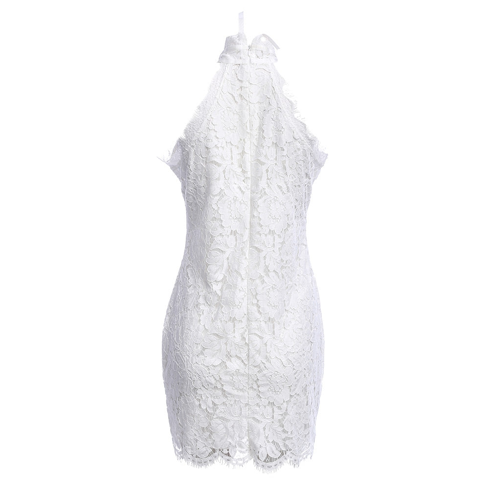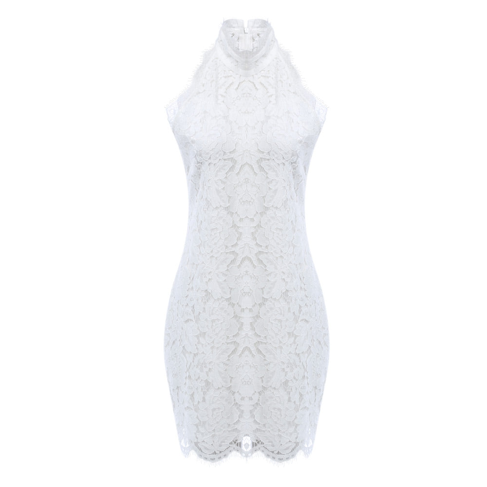 The white lace elegantly creates a feminine slim silhouette of this stunning dress, with a stand collar and scalloped hem. The elaborate lace pattern on this dress shows a sense of elegance, and hollow out design adds a sexy element.