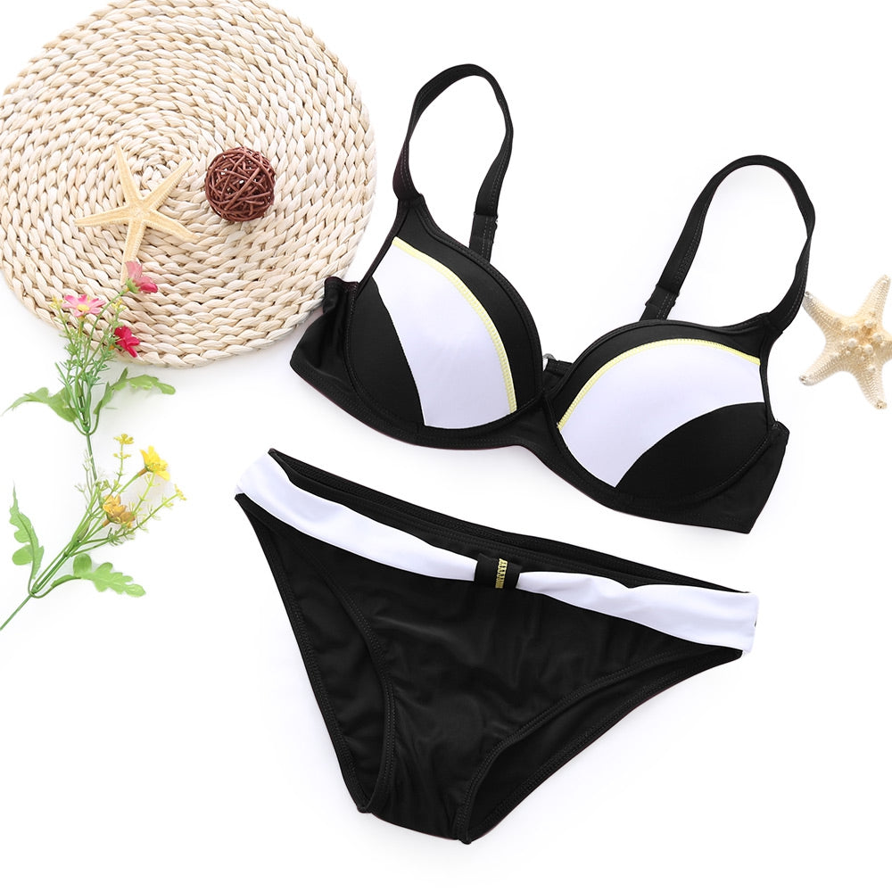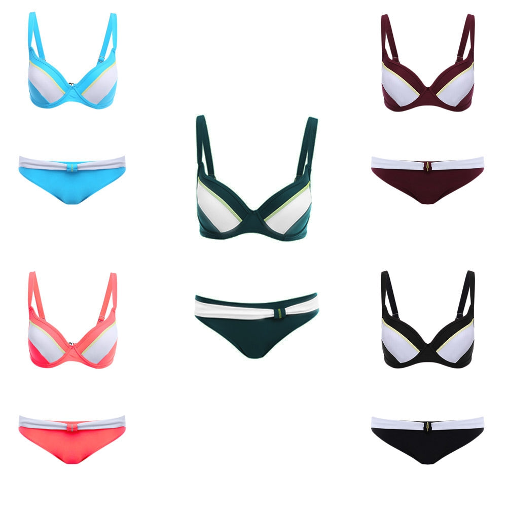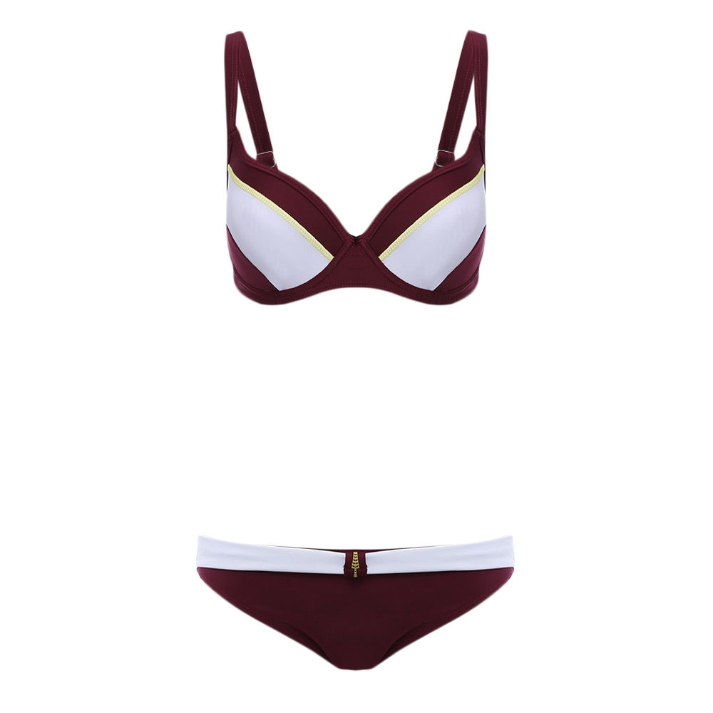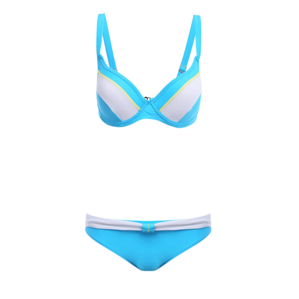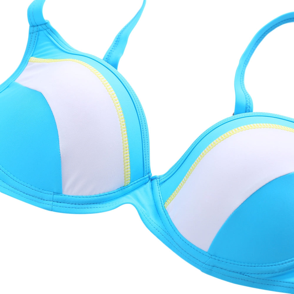 Swimsuits are the must-have items when you head to the beach. This lovely and sexy bikini set with the color blocking design can shine you bright. The lightly padded cups and underwire support shape your body line.