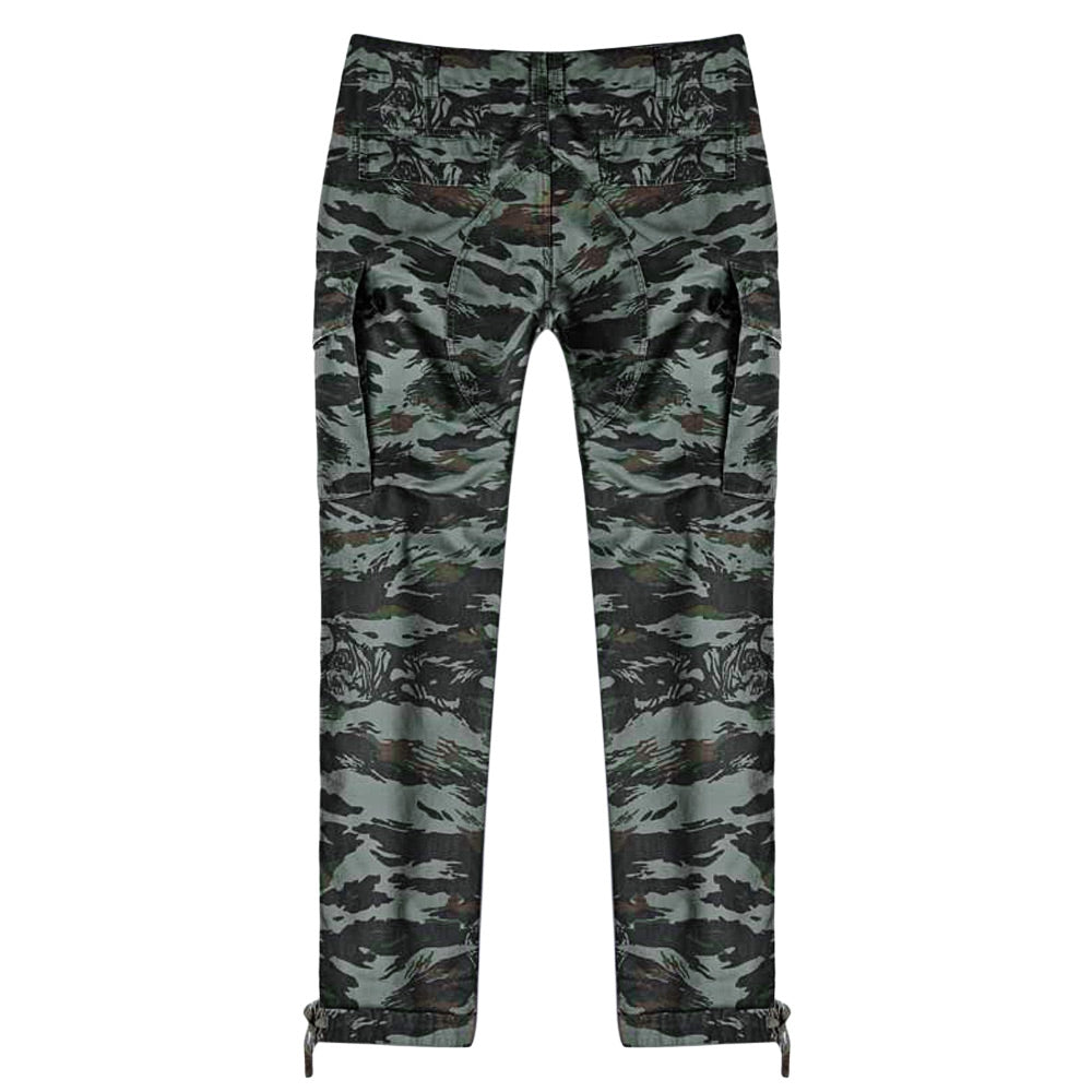 Outdoor straight pants crafted from cotton are designed with military pattern print, adjustable leg hem and smooth car line.