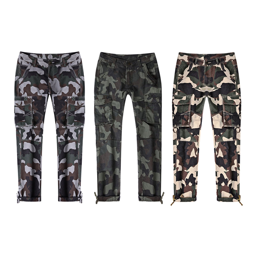 Outdoor pants crafted from cotton are designed with military pattern, oversize pockets and zipper fly closure. Suitable for camping, travel and climbing.