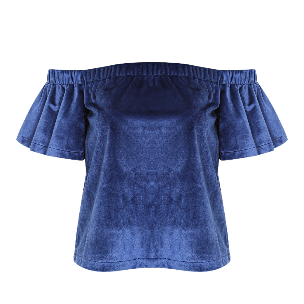 Trendy Off The Shoulder Bell Sleeve Velour Women Blouse