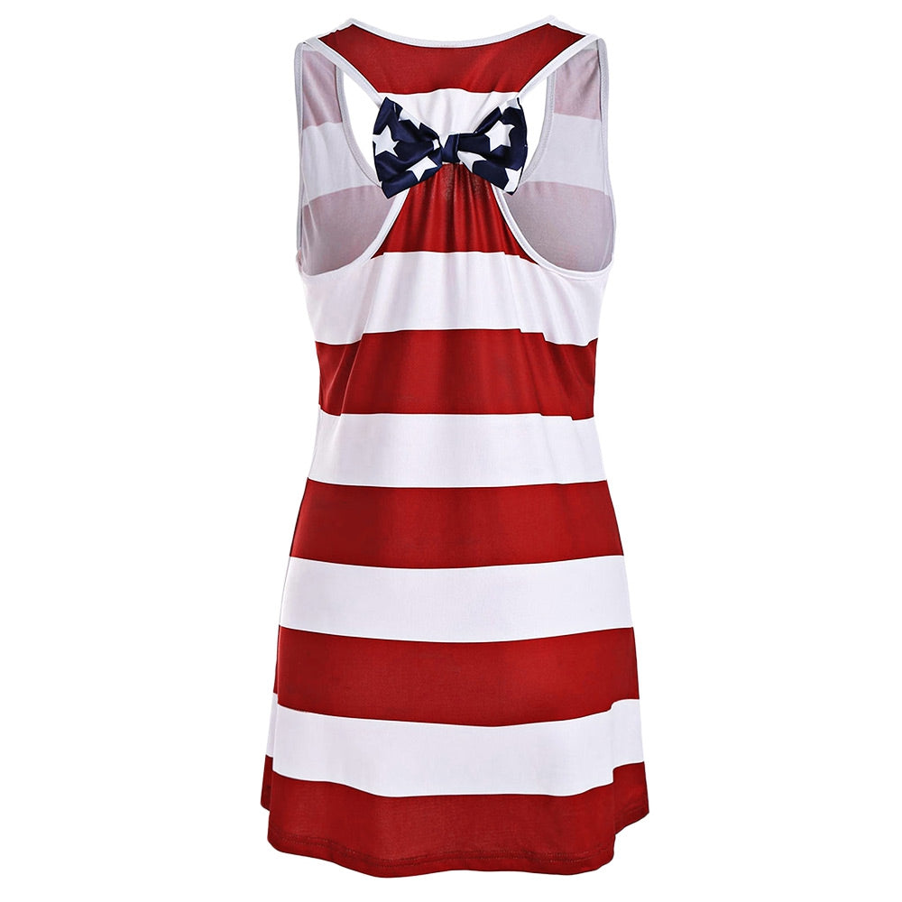American Flag Bowknot Patriotic Racerback Tank Dress