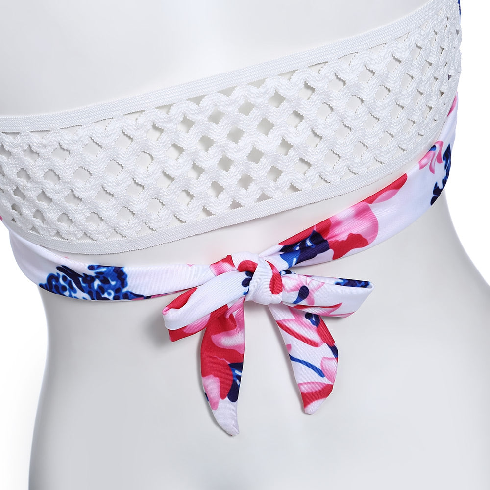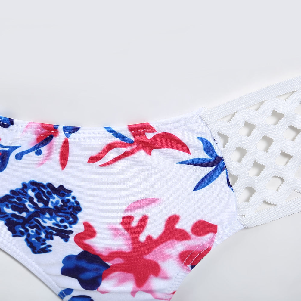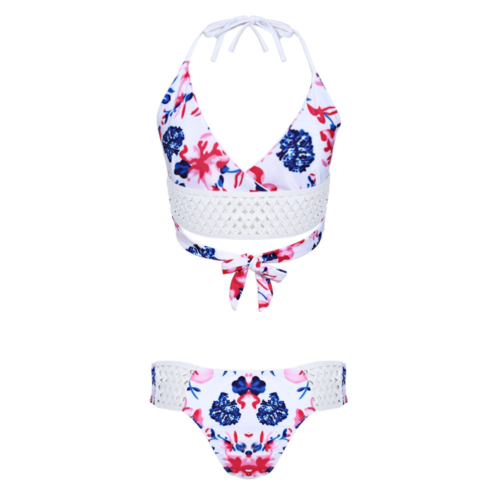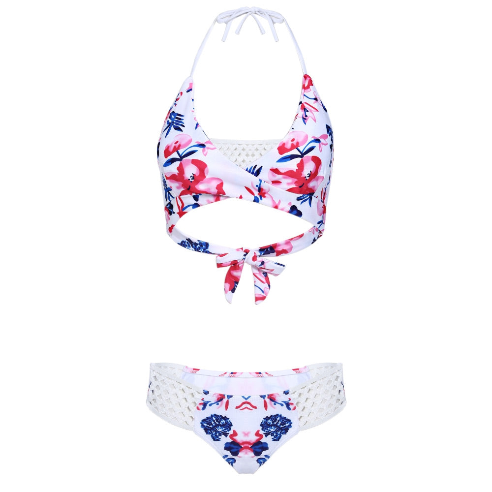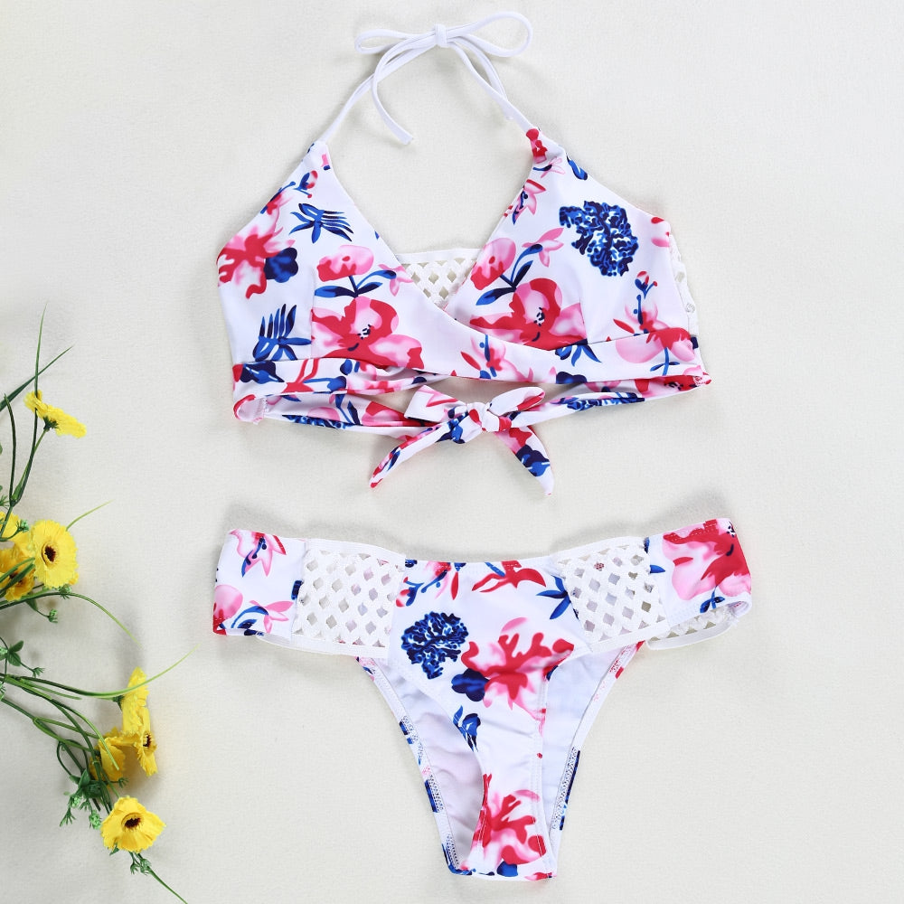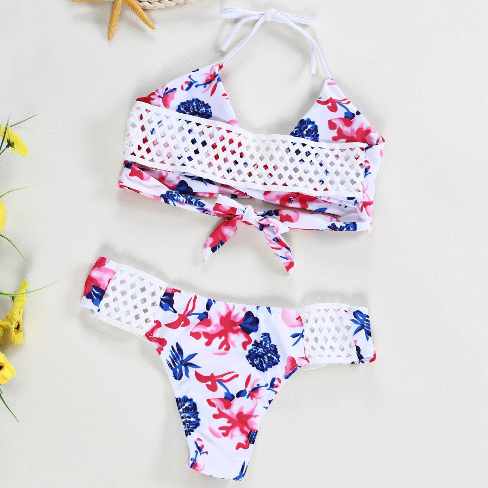 Sexy Halter Neck Hollow Out Print Low Waist Women Bikini