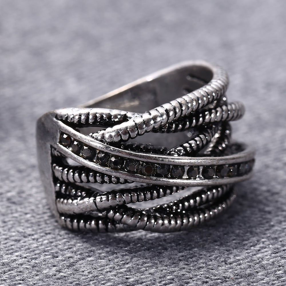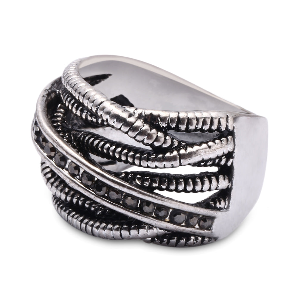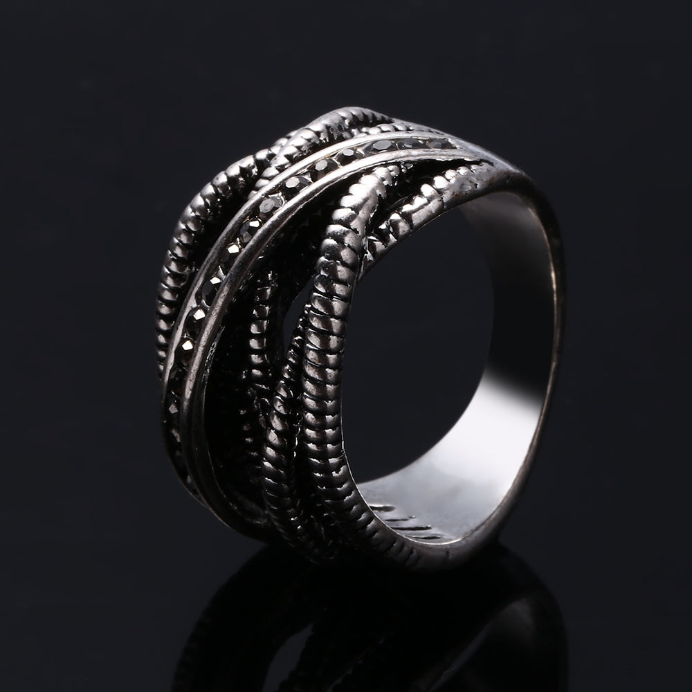 Stylish Old Classical Silver Color Springs Twine Rhinestone Ring